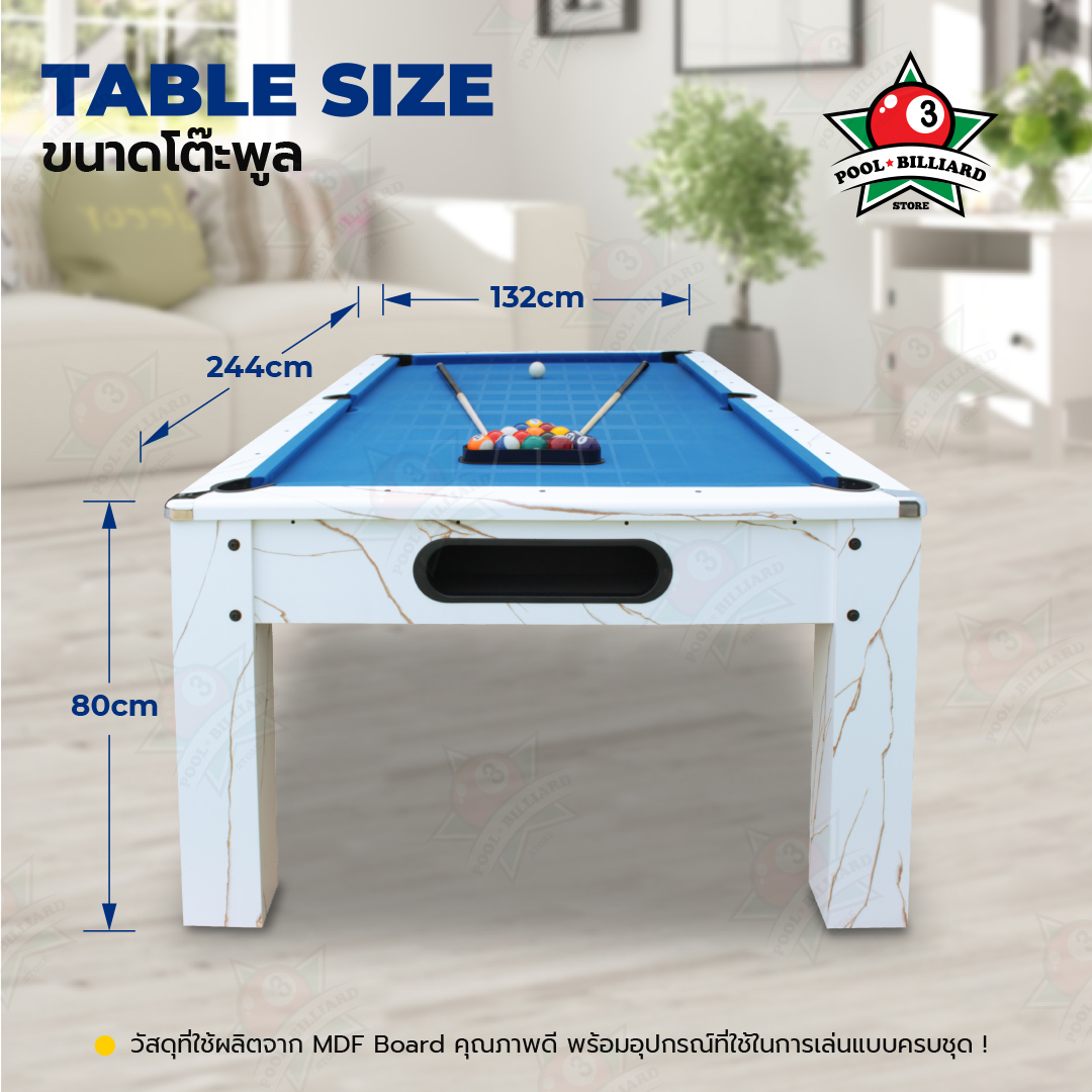 โต๊ะพูล 3IN1 POOL BILLIARD รุ่น V.18 ขนาด 8 ฟุต โต๊ะสีขาวลายหินอ่อน
