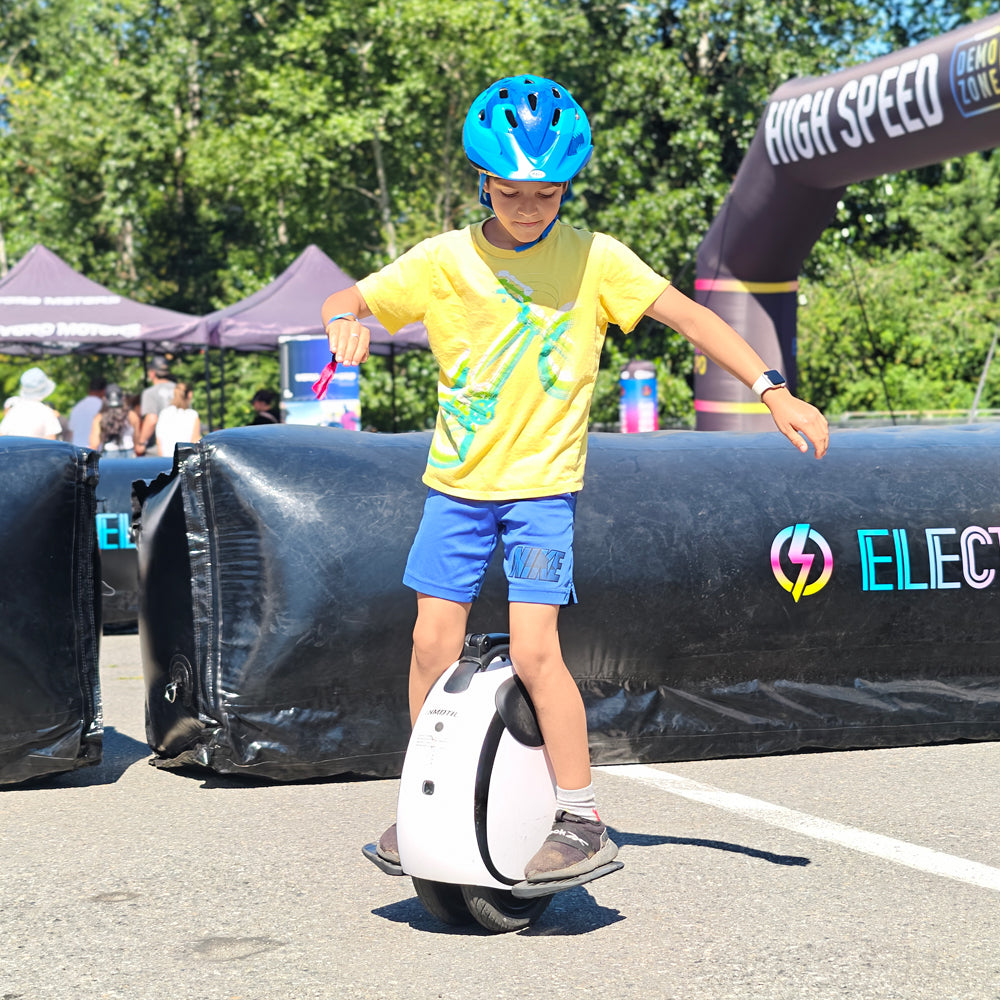 - ดีไซน์ล้อเดียวแบบ “dual-tire” (สองยางข้างเคียงบนล้อเดียว) ช่วยให้ตัวรถตั้งตัวได้เองอย่างมั่นคงเวลาอยู่กับที่ — เรียนขี่ได้ภายใน ~3–5 นาที เหมาะทั้งเด็ก ผู้เริ่มต้น และคนที่ไม่ถนัดบาลานซ์มาก