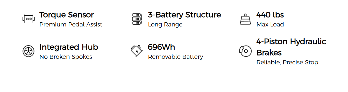 - แบตเตอรี่ 696 Wh ให้ระยะขี่สูงถึง ~84 ไมล์ (ต่อการชาร์จ 1 ครั้ง) และสามารถขยายด้วยชุดแบตเสริมเพื่อไปได้ไกลยิ่งขึ้น เหมาะสำหรับการท่องเที่ยวไกล หรือใช้งานหลายวันโดยไม่ต้องชาร์จบ่อย
