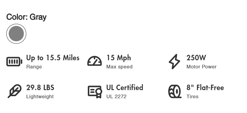 - ดีไซน์น้ำหนักเบา พร้อมระบบพับแบบ One-click ช่วยให้พกพาและจัดเก็บได้ง่าย เหมาะกับการใช้งานในเมือง