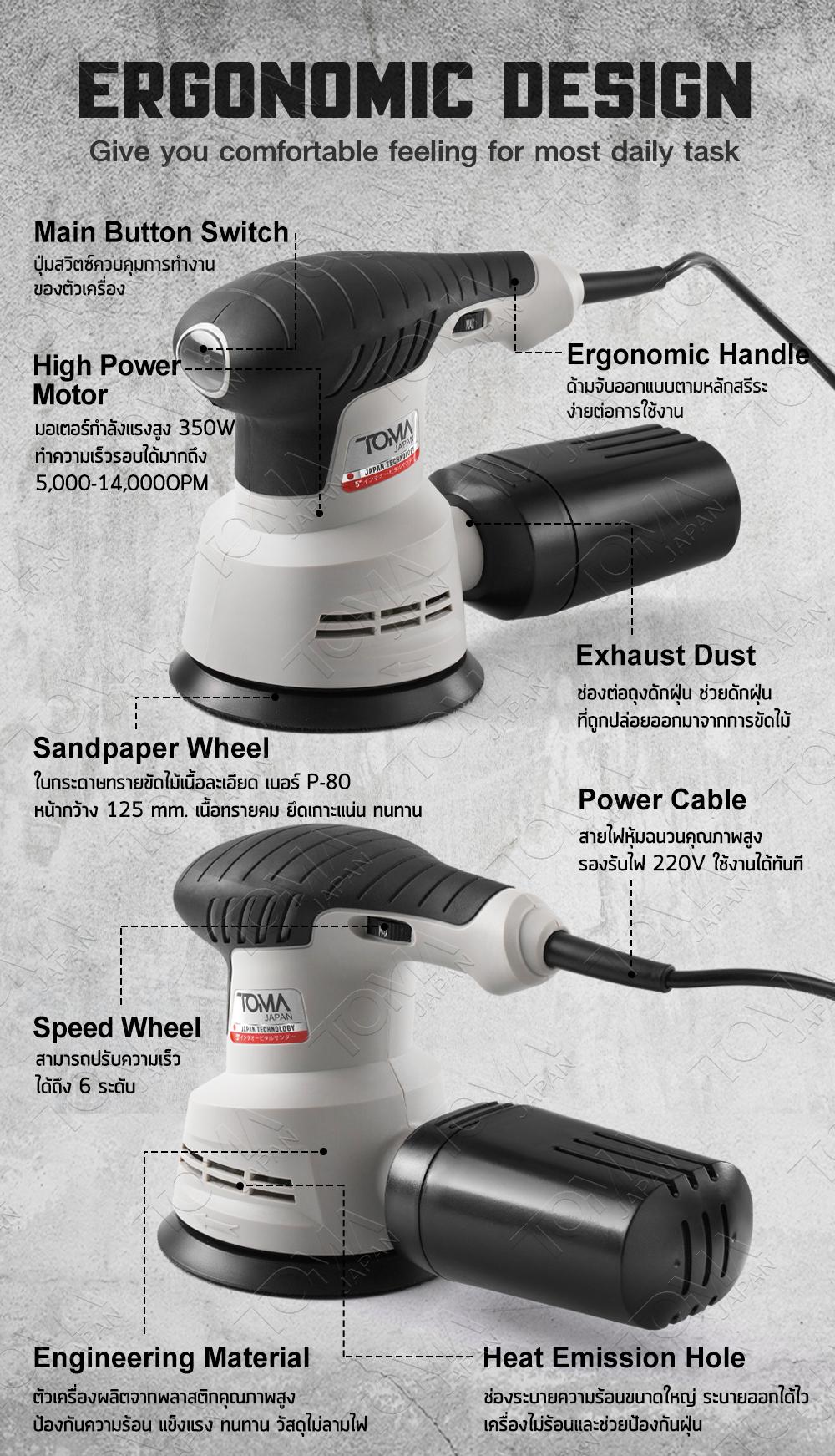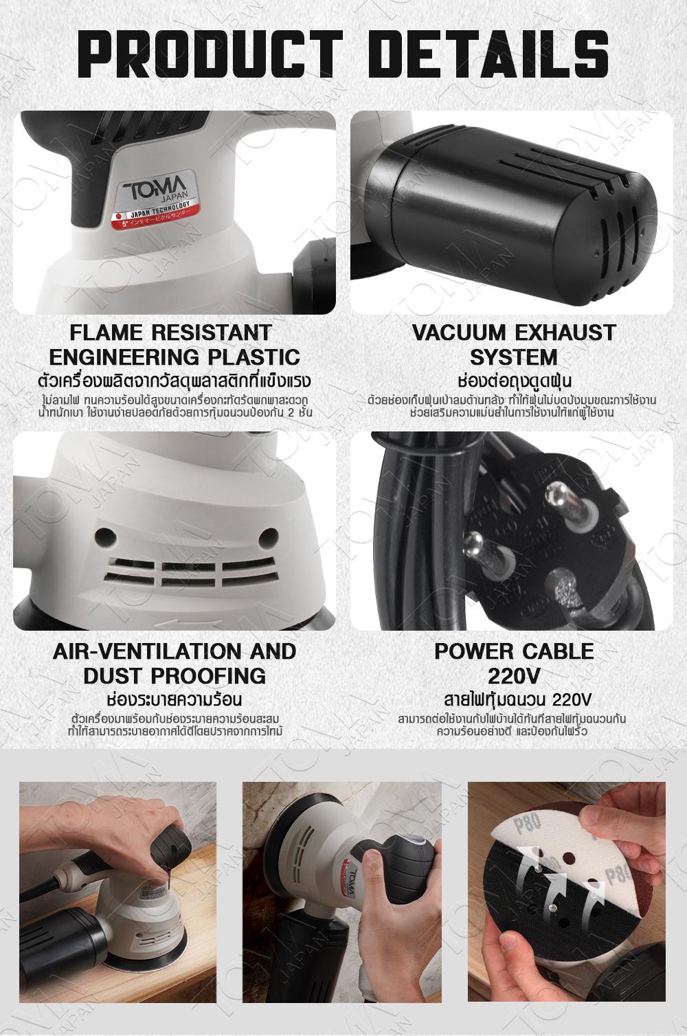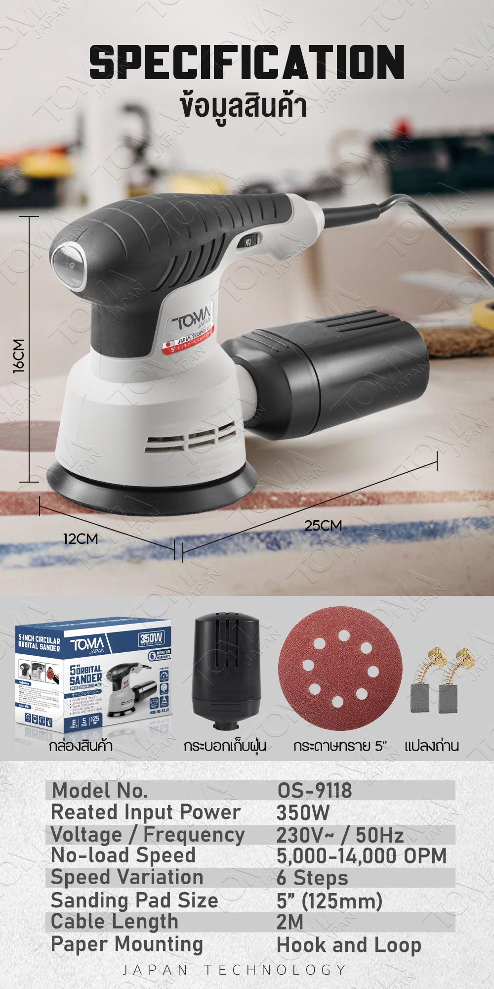 เครื่องขัดกระดาษทราย TOMA JAPAN รุ่น OS-9118 350 วัตต์รายละเอียดสินค้า