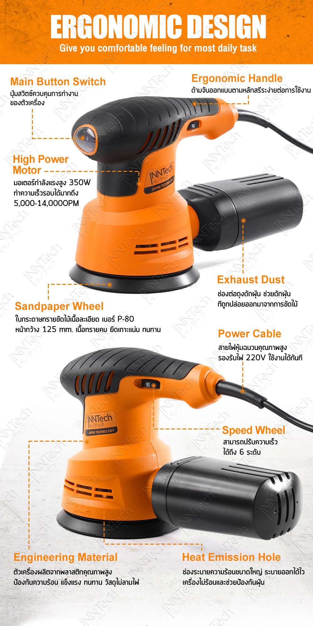 เครื่องขัดกระดาษทราย InnTech รุ่น OS-9118 350 วัตต์รายละเอียดสินค้า