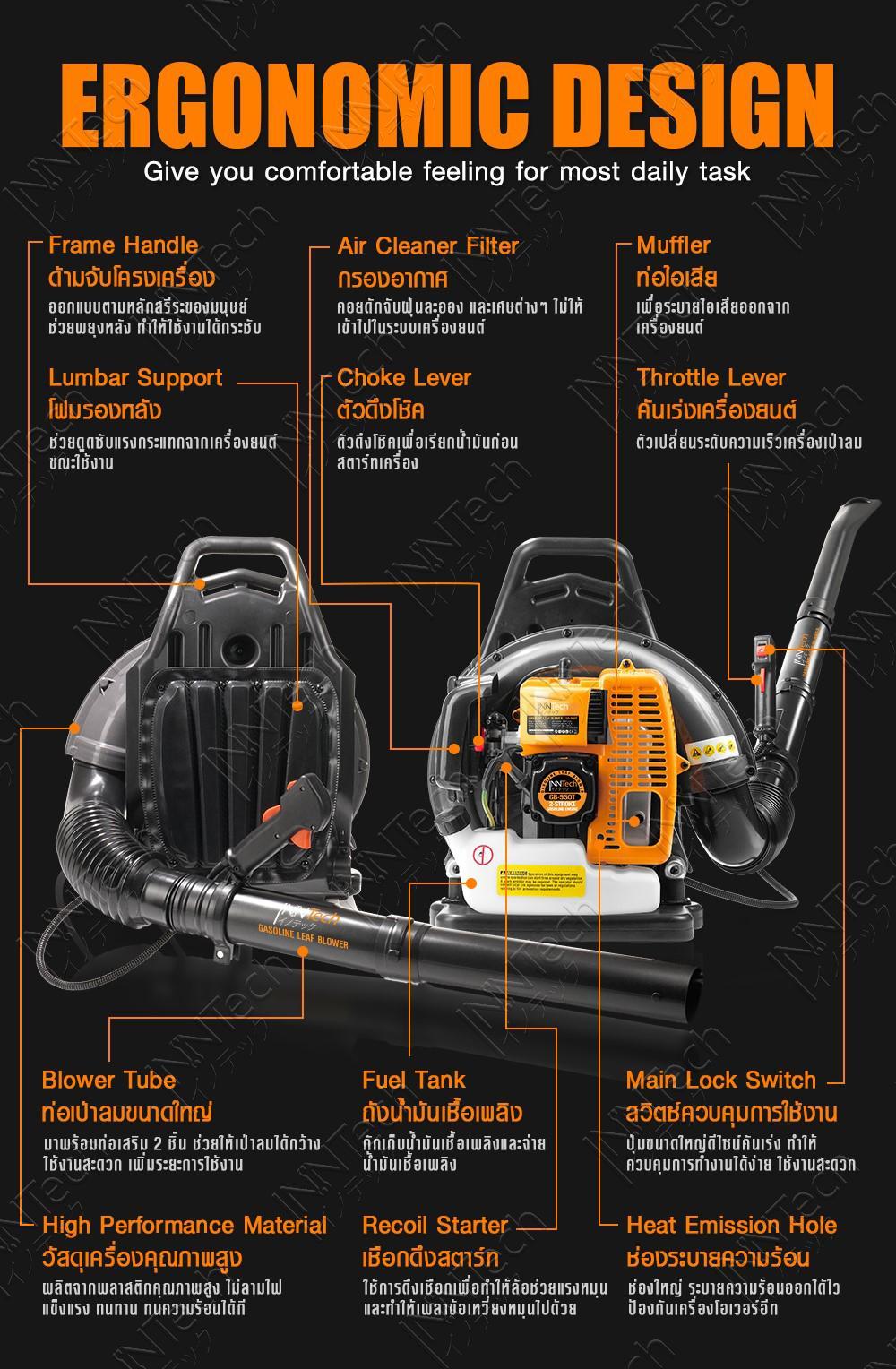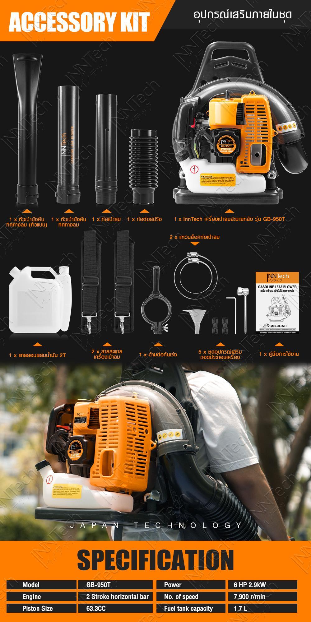 เครื่องเป่าใบไม้ INNTECH รุ่น GB-950T สะพายหลัง 6HP 2.9KW— รายละเอียดสินค้า —
