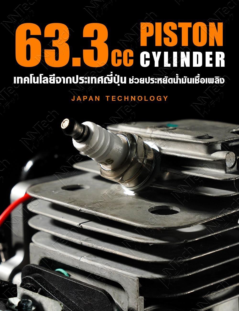 - เครื่องยนต์ขนาด 63.3CC แรงม้าสูงสุด 6HP 2.9kW