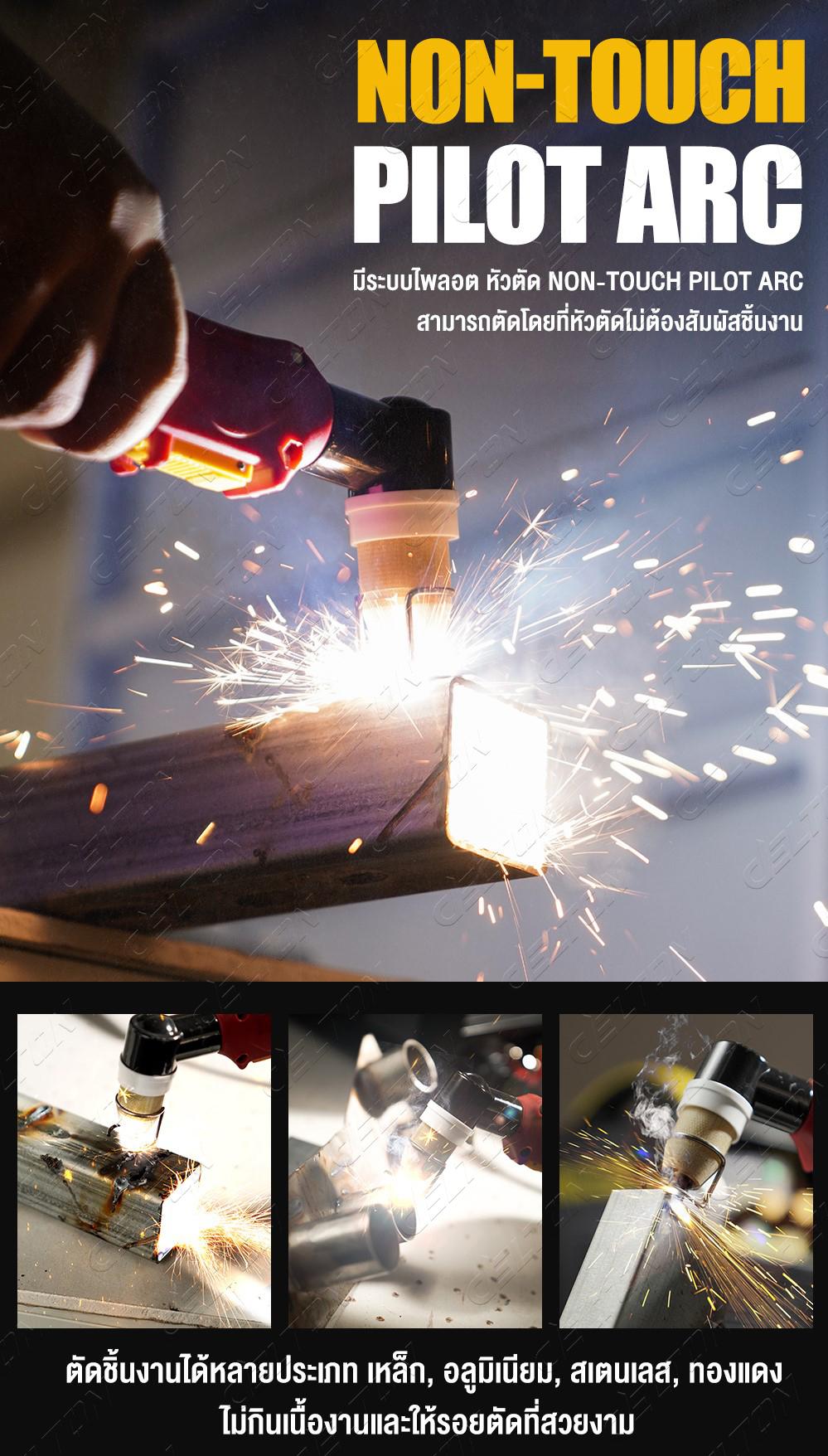 - มีระบบไพลอต หัวตัด NON-TOUCH PILOT ARC (เฉพาะรุ่น CUT-40 Non-Touch) สามารถตัดโดยที่หัวตัดไม่ต้องสัมผัสชิ้นงาน ไม่เปลืองอะไหล่หัวตัด ตัดงานสี งานสนิม ได้
