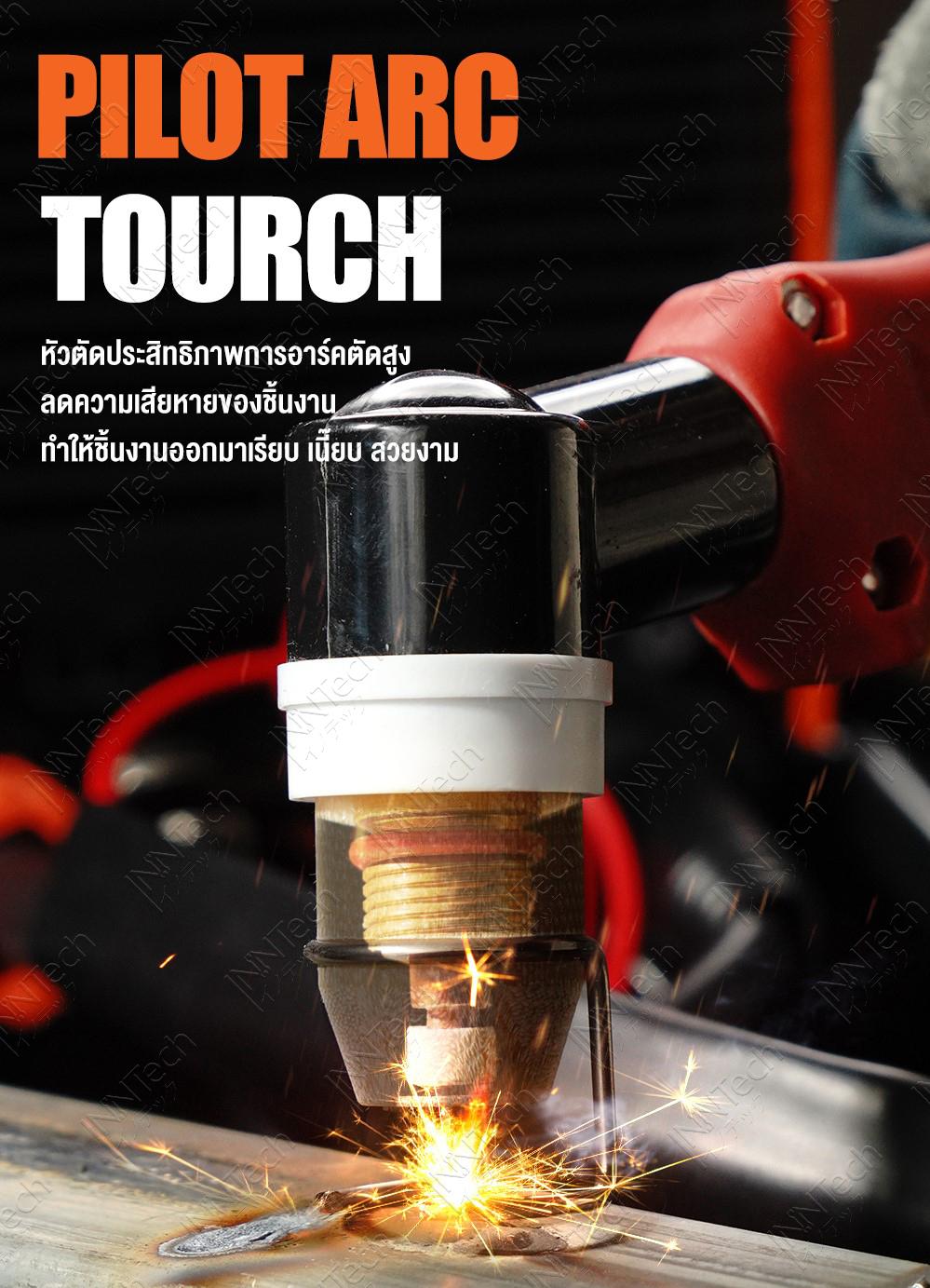- มีระบบไพลอต หัวตัด NON-TOUCH PILOT ARC (เฉพาะรุ่น CUT-40 Non-Touch) สามารถตัดโดยที่หัวตัดไม่ต้องสัมผัสชิ้นงาน ไม่เปลืองอะไหล่หัวตัด ตัดงานสี งานสนิม ได้