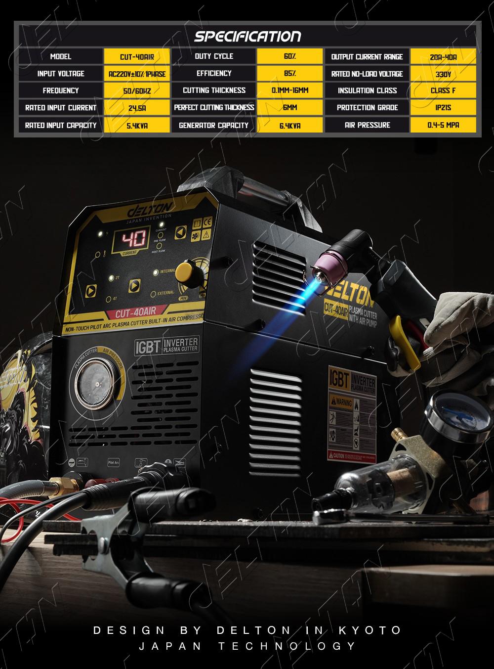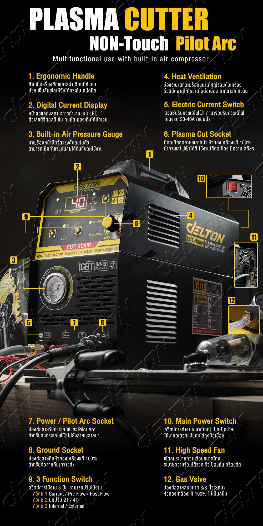 เครื่องตัดพลาสม่า DELTON รุ่น CUT-40AIR 40 แอมป์ ปั๊มลมในตัว— รายละเอียดสินค้า —