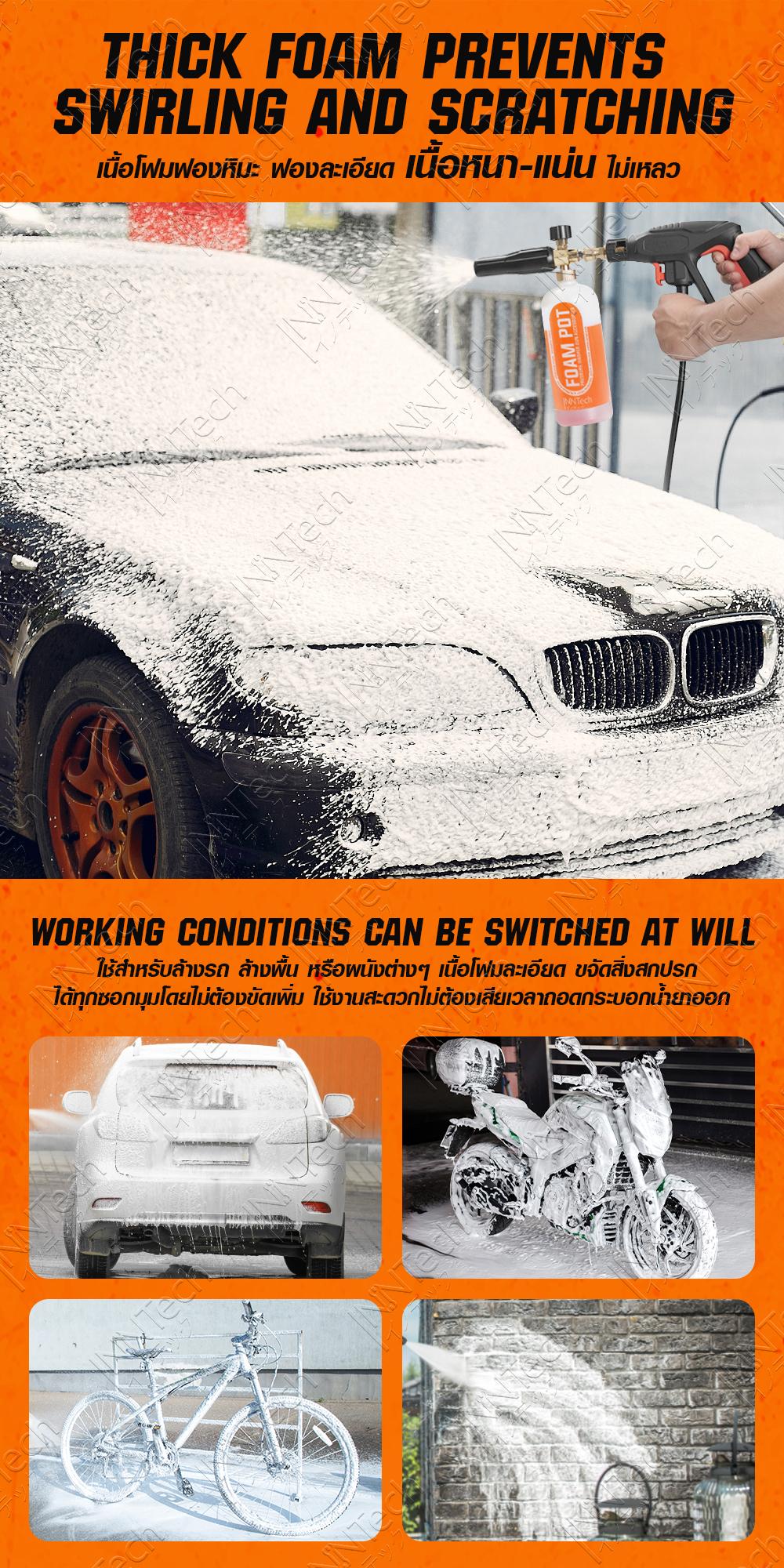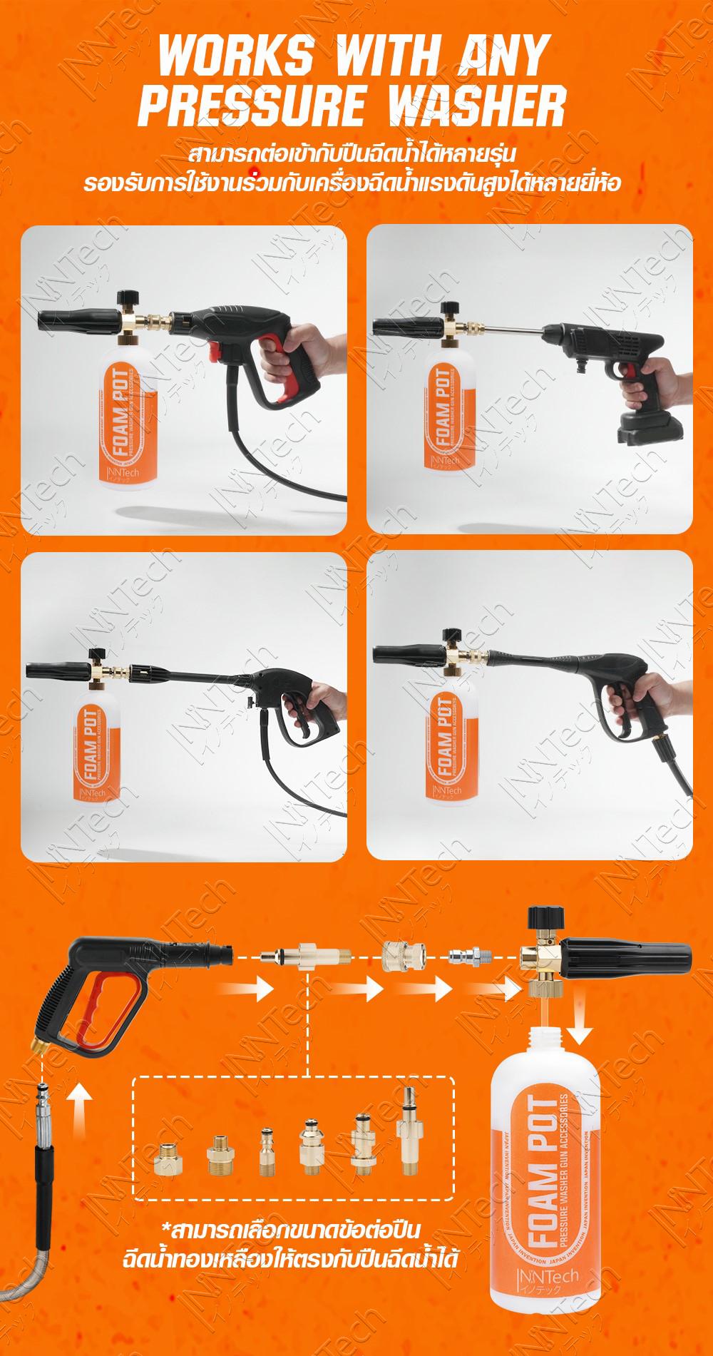 - สามารถต่อเข้ากับปืนฉีดน้ำได้หลายรุ่น รองรับการใช้งานร่วมกับเครื่องฉีดน้ำแรงดันสูงได้หลายยี่ห้อ