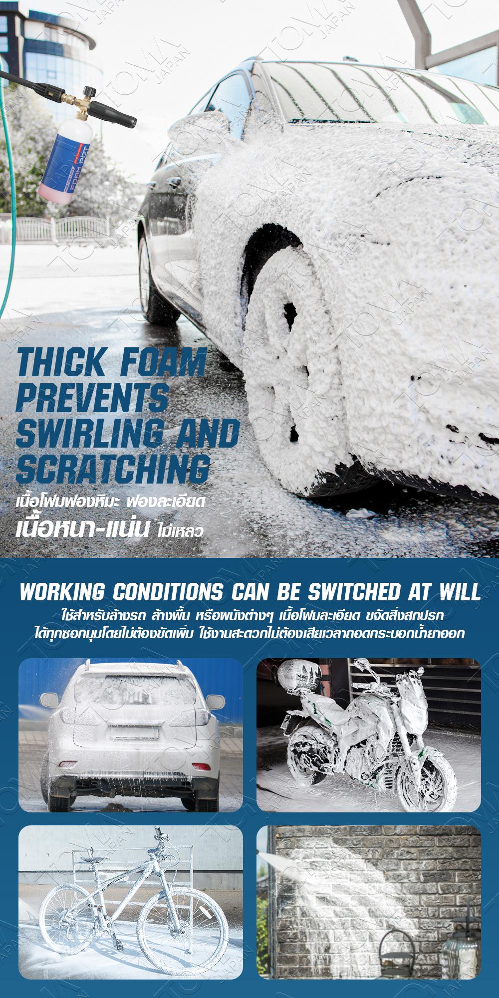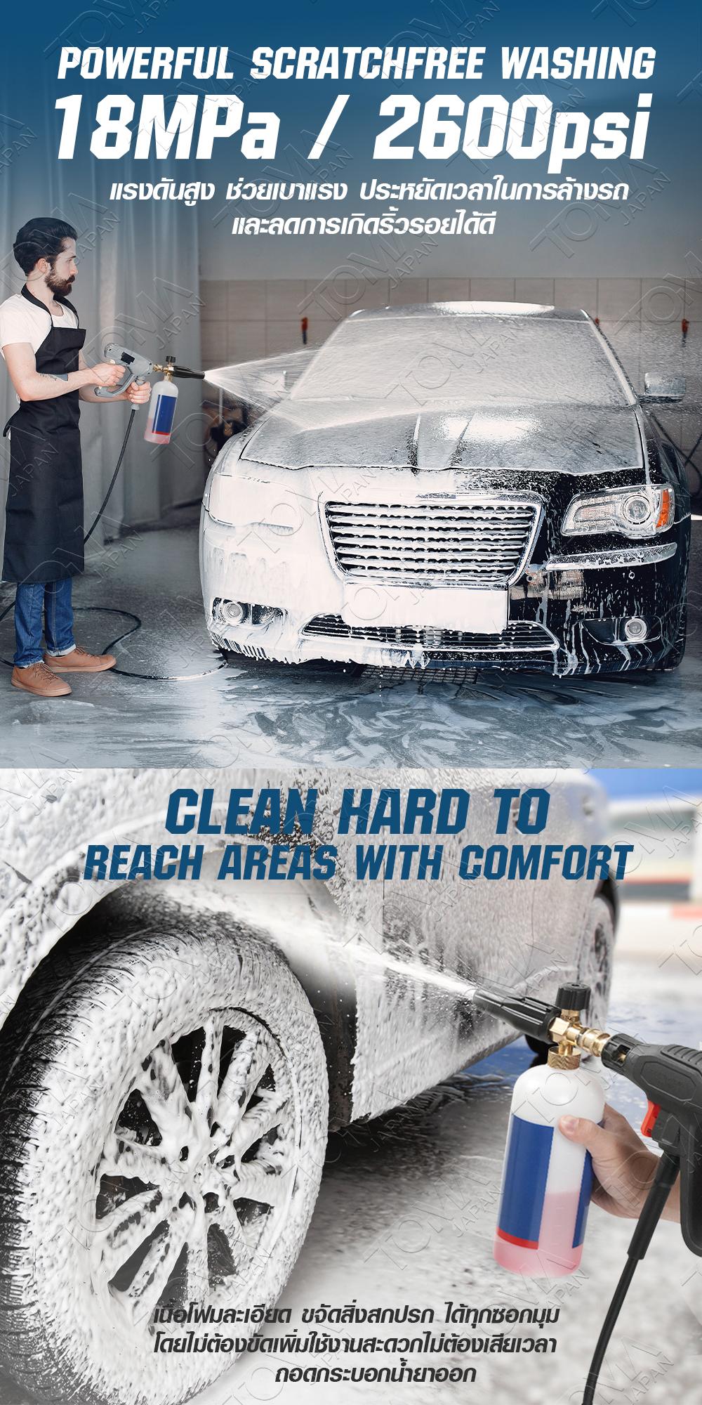 - สามารถต่อเข้ากับปืนฉีดน้ำได้หลายรุ่น รองรับการใช้งานร่วมกับเครื่องฉีดน้ำแรงดันสูงได้หลายยี่ห้อ