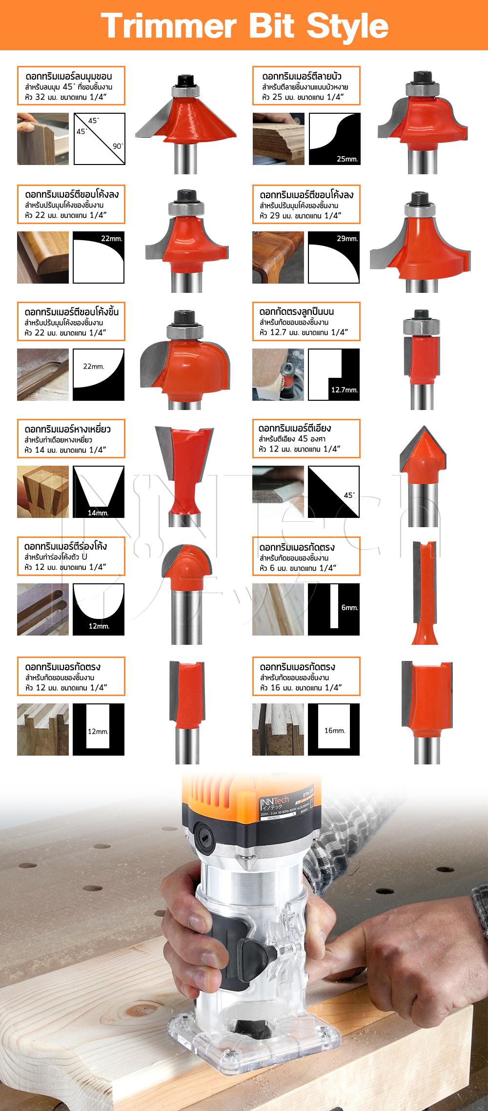 ใช้สำหรับเซาะร่องไม้ ตกแต่งชิ้นงาน หรืองานเฟอร์นิเจอร์ ถอดปลั๊กทุกครั้งหลังการใช้งาน