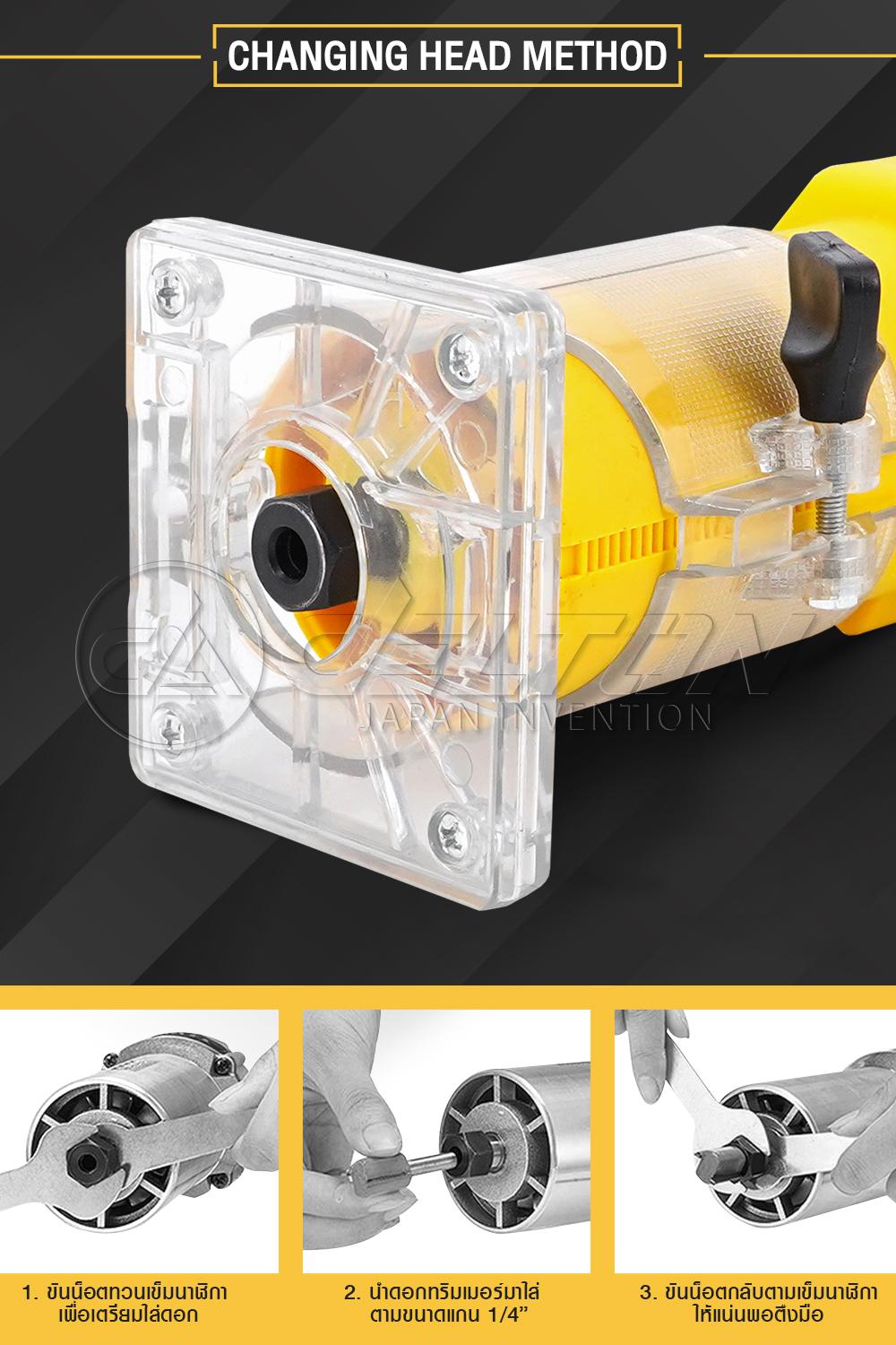 ใช้สำหรับเซาะร่องไม้ ตกแต่งชิ้นงาน หรืองานเฟอร์นิเจอร์ ถอดปลั๊กทุกครั้งหลังการใช้งาน