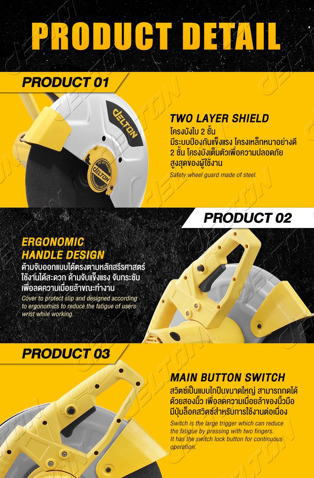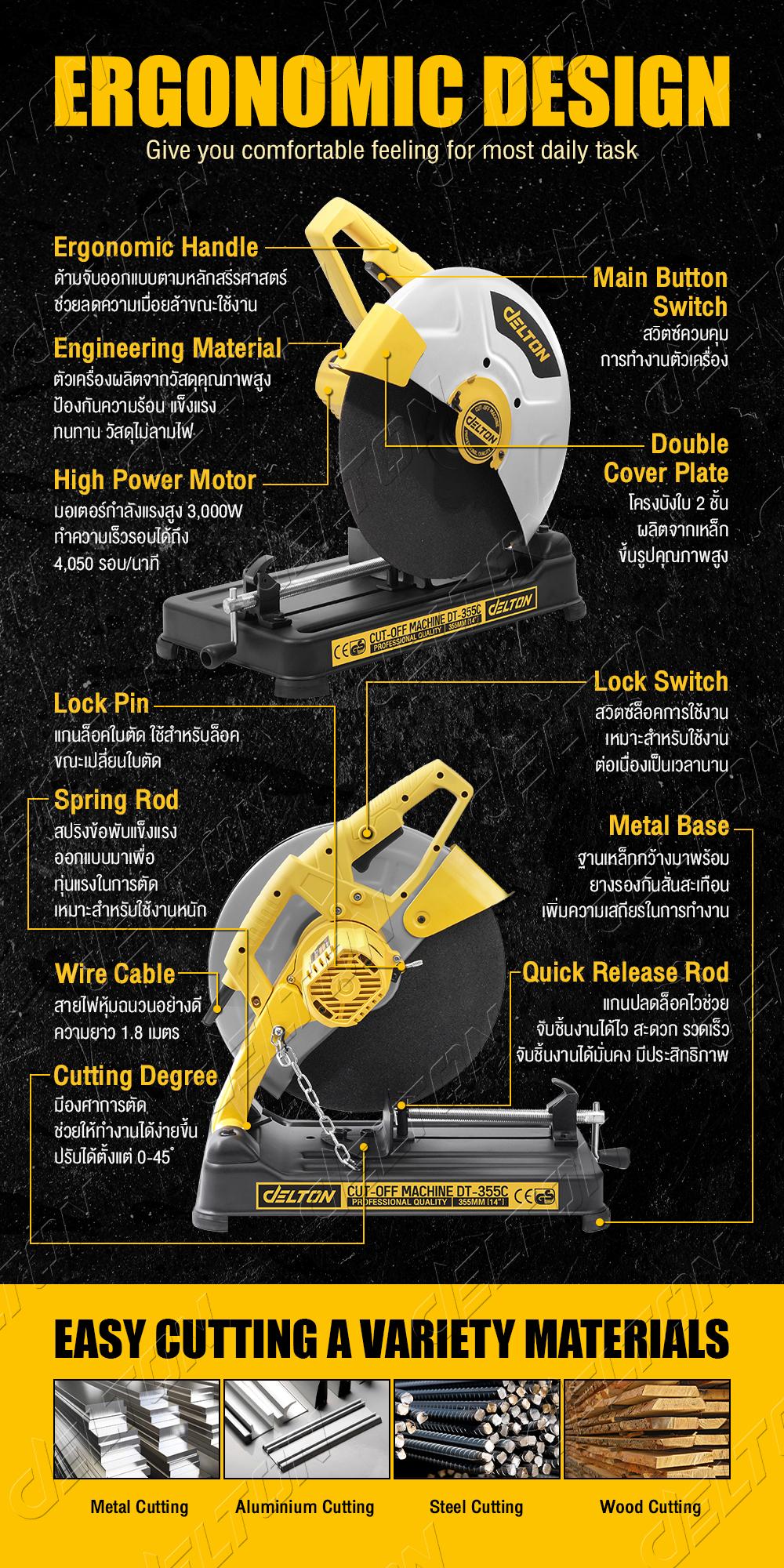 เครื่องตัดไฟเบอร์ DELTON รุ่น DT-355C 14 นิ้ว 3,000 วัตต์— คุณสมบัติ —