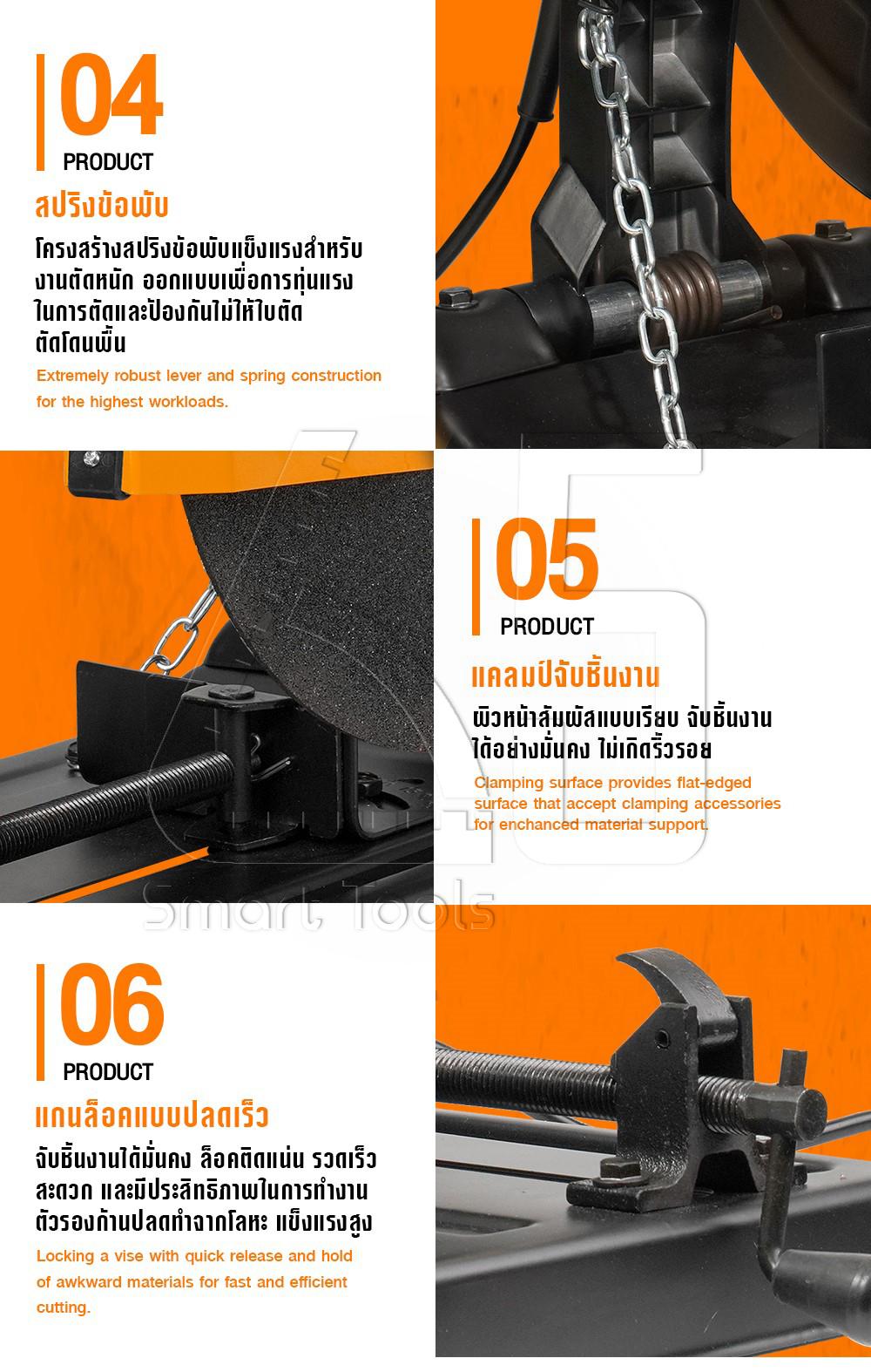 - แขนเลื่อยและบานพับแข็งแกร่ง สำหรับงานหนัก ตัดได้ตรง