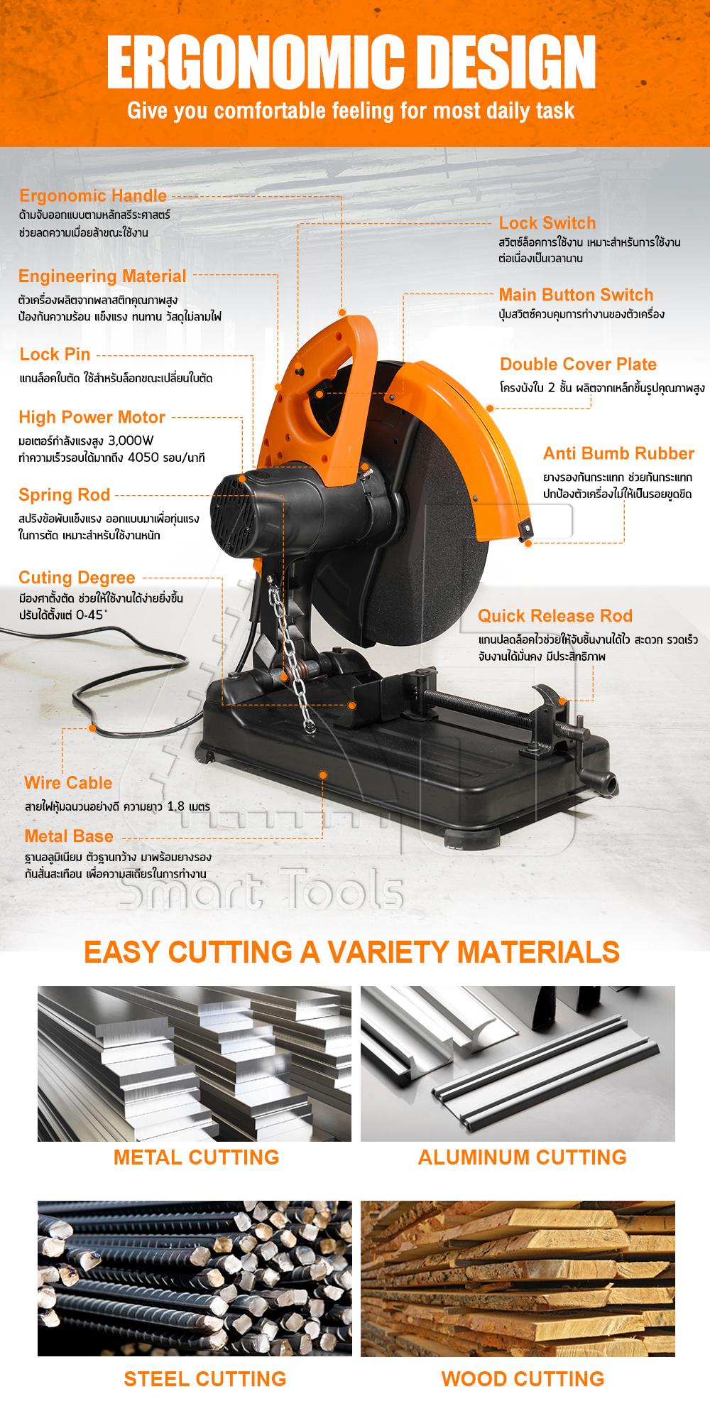 เครื่องตัดไฟเบอร์ InnTech รุ่น FBC-008 14 นิ้ว 3,000 วัตต์คุณสมบัติ