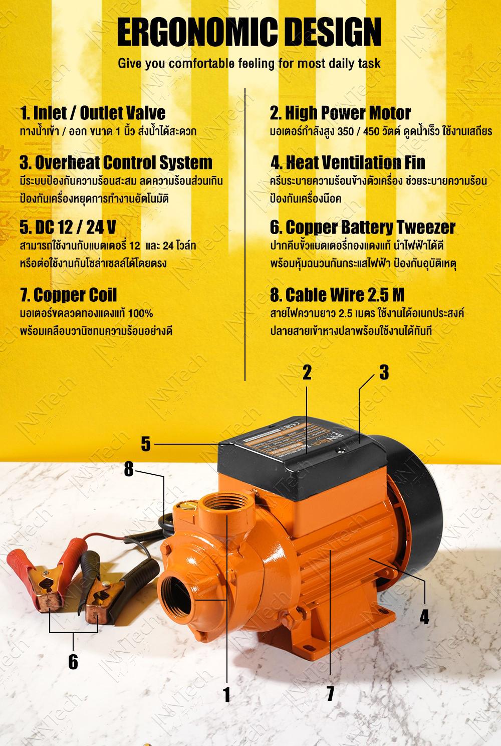 ปั๊มหอยโข่งโซลาร์เซลล์ (เฉพาะตัวเครื่อง) InnTech รุ่น ITQB-24V ขนาด 1 นิ้ว 450 วัตต์รายละเอียดสินค้า