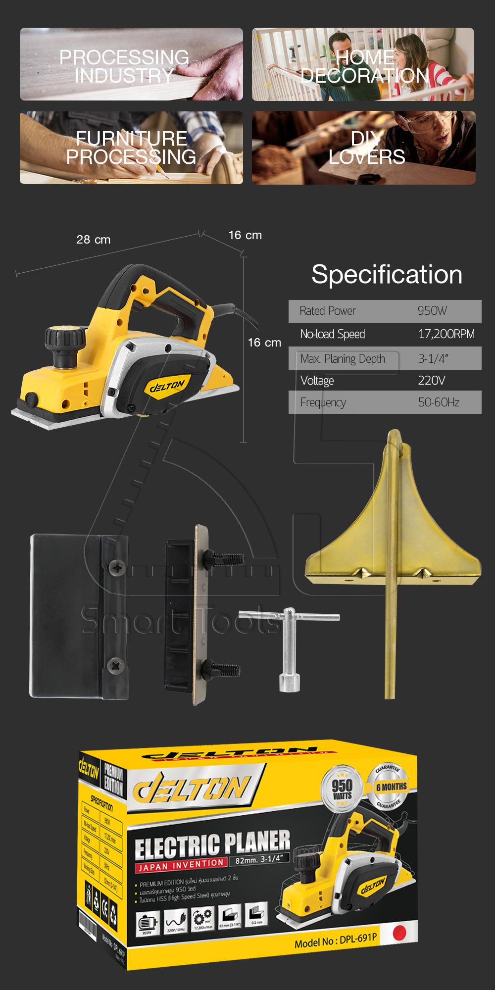 กบไสไม้ไฟฟ้า DELTON รุ่น DPL-691P 950 วัตต์คุณสมบัติ