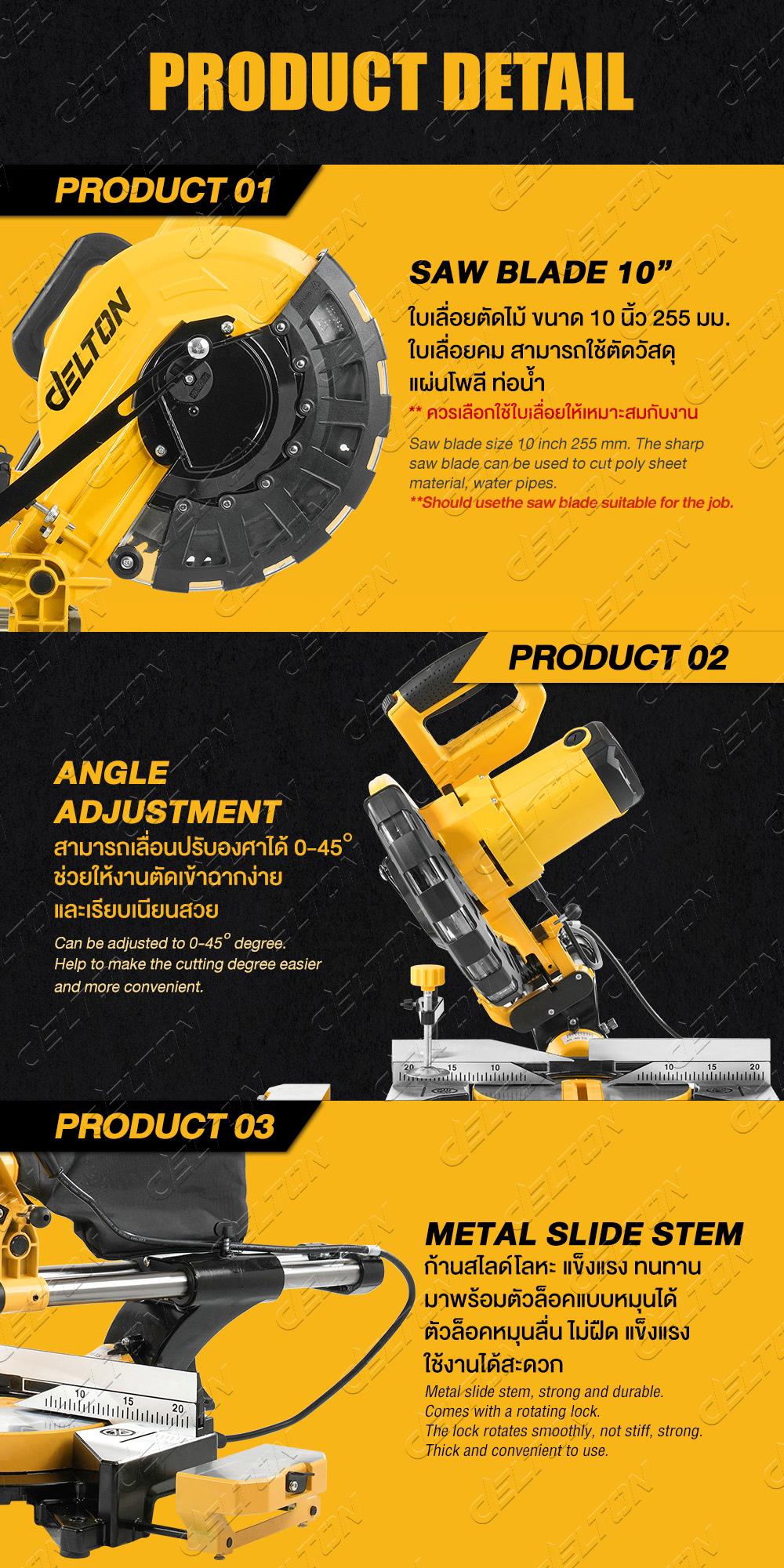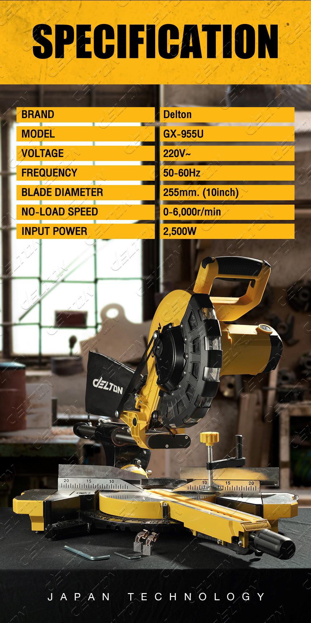เครื่องเลื่อยองศา DELTON รุ่น GX-955U 10 นิ้ว 2,500 วัตต์— รายละเอียดสินค้า —