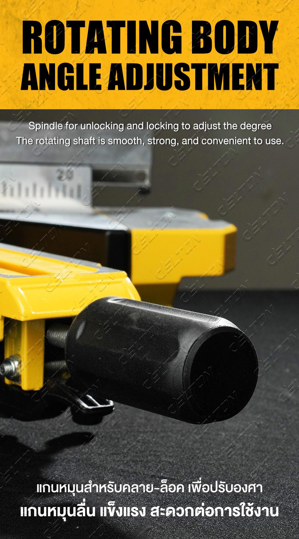 - ฐานรองตัดชิ้นงานกว้าง แข็งแรง ไม่ลื่นไถลขณะใช้งาน ด้านข้างสามารถยืดขยายได้ทั้งซ้าย-ขวา + มีตัวปรับความยาว ช่วยในการตัดชิ้นงานความยาวเดิมซ้ำๆ