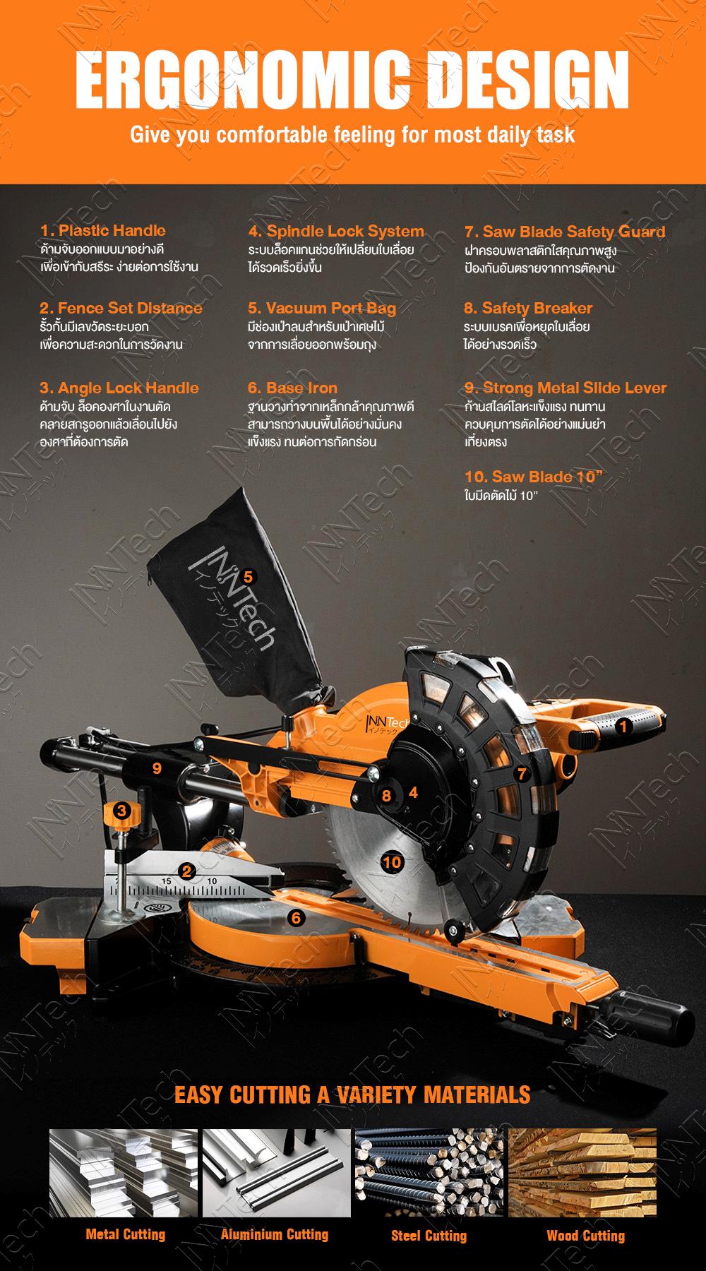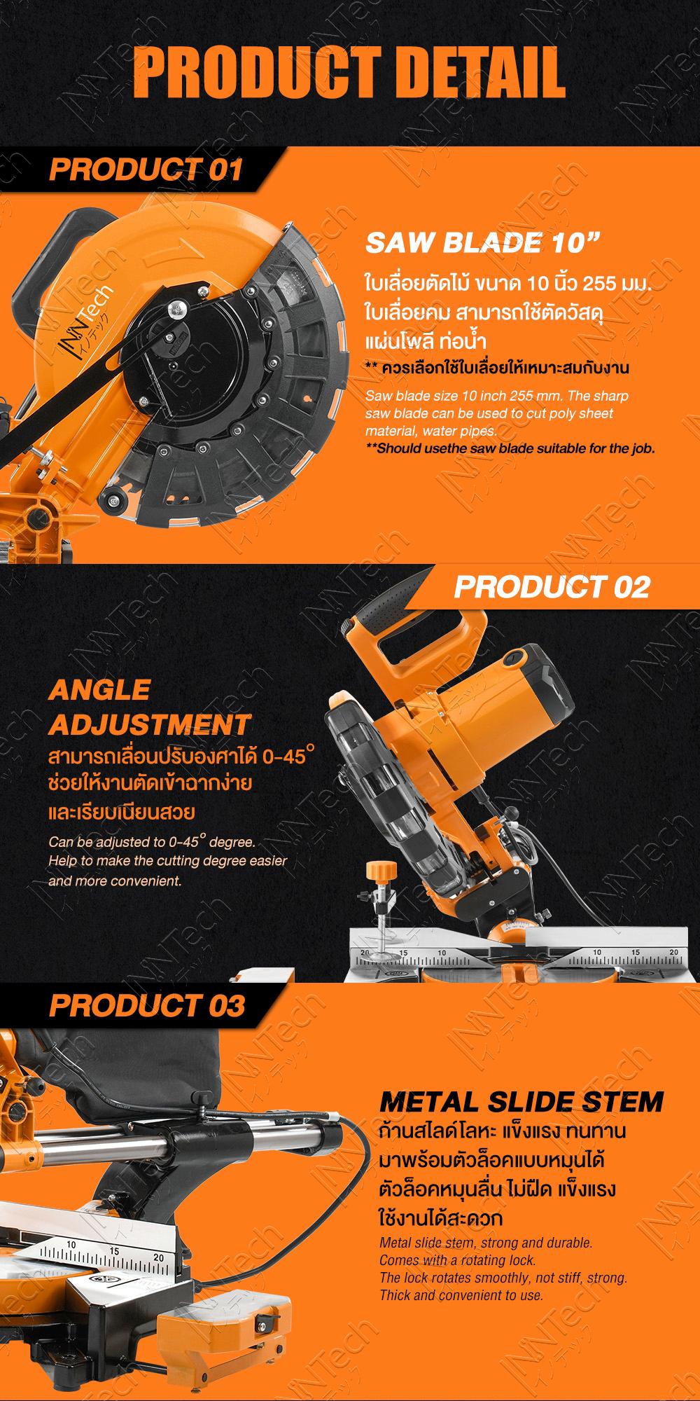เครื่องเลื่อยองศา InnTech รุ่น GX-955U 10 นิ้ว 2,500 วัตต์— รายละเอียดสินค้า —