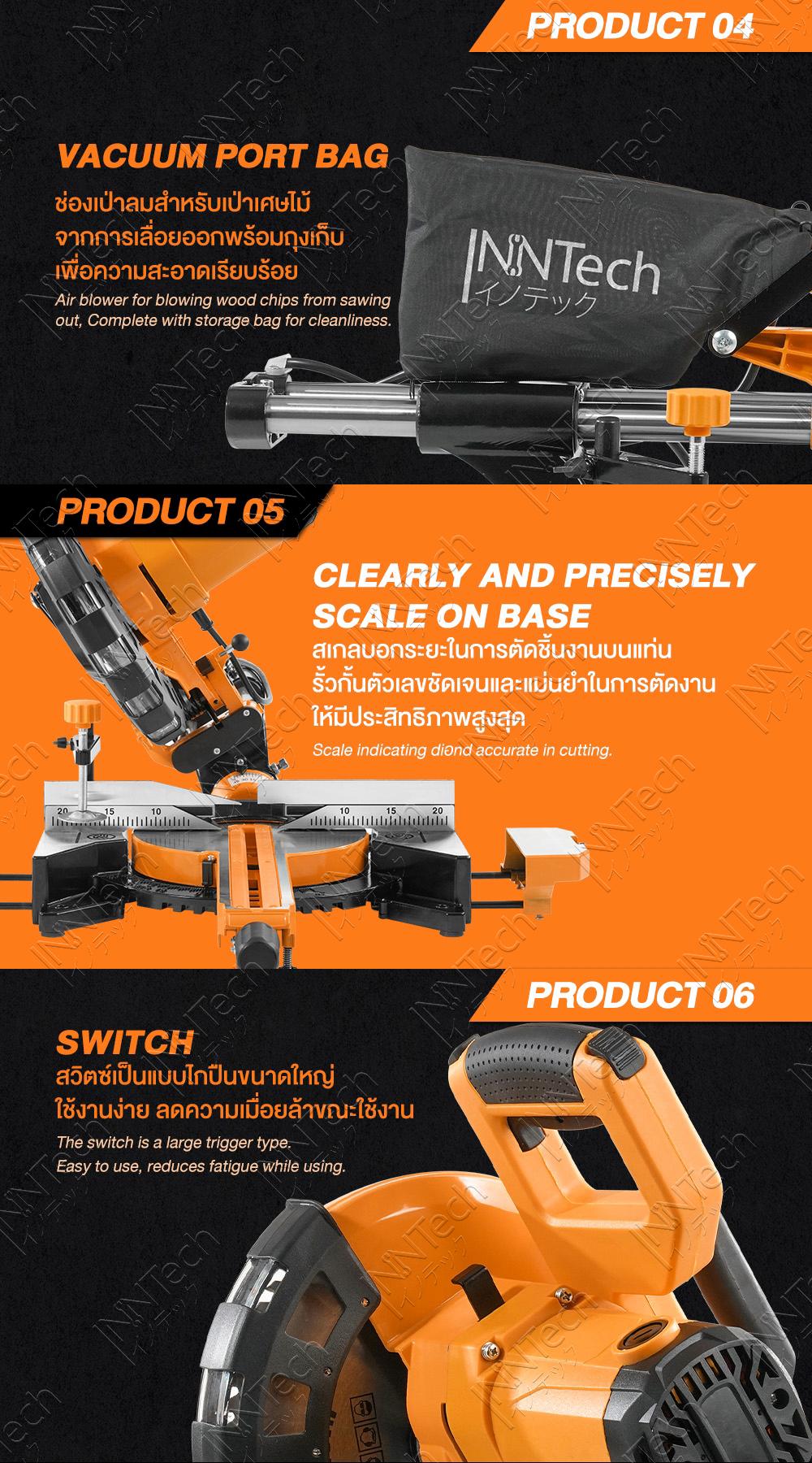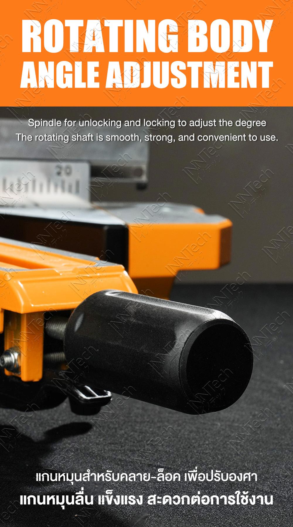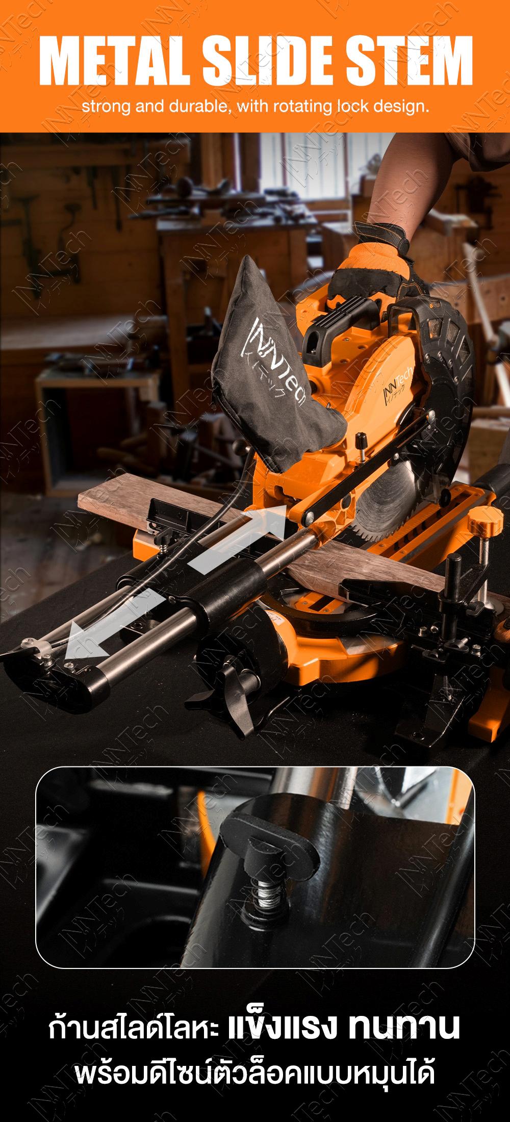 - ฐานรองตัดชิ้นงานกว้าง แข็งแรง ไม่ลื่นไถลขณะใช้งาน ด้านข้างสามารถยืดขยายได้ทั้งซ้าย-ขวา + มีตัวปรับความยาว ช่วยในการตัดชิ้นงานความยาวเดิมซ้ำๆ