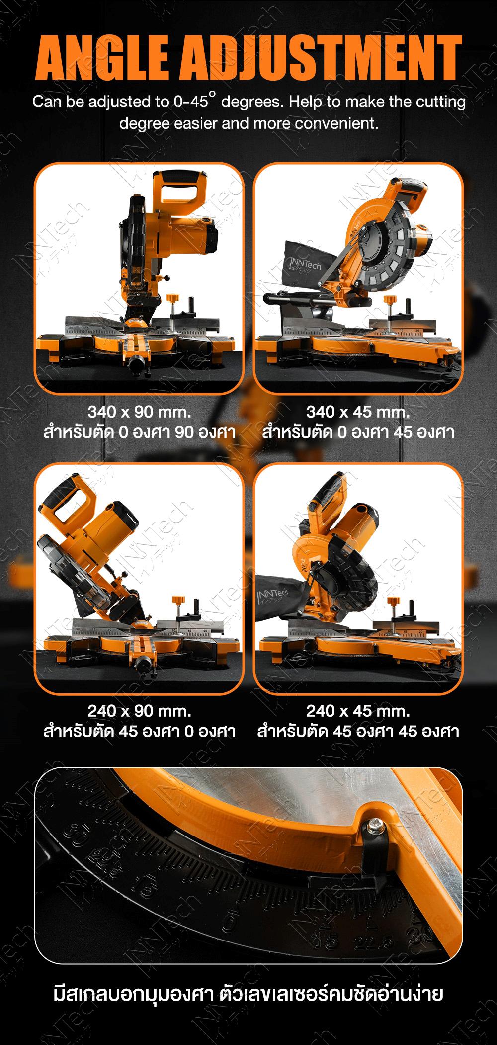 - เครื่องเลื่อยสามารถปรับเอียงซ้ายได้ 45 องศา