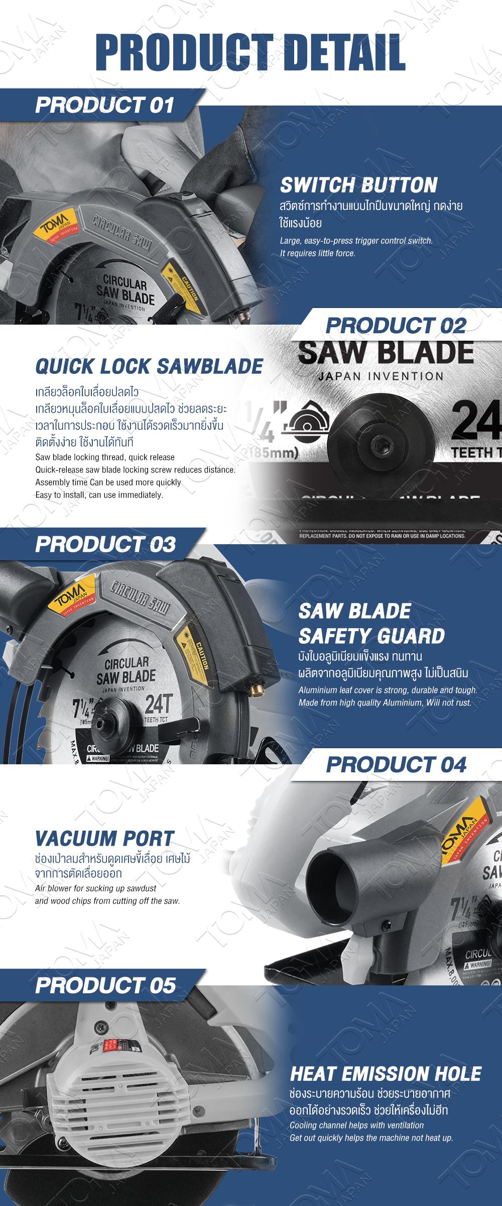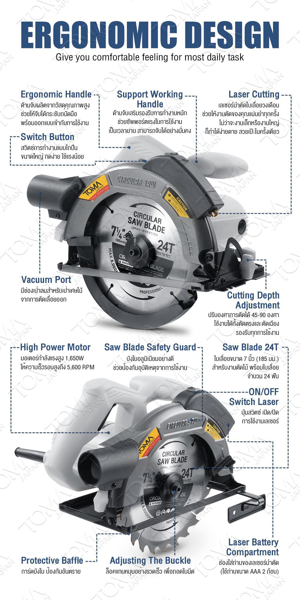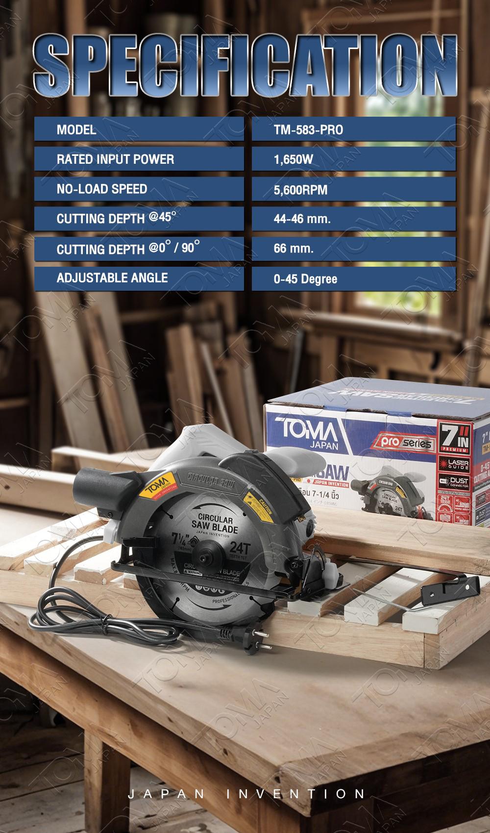 เลื่อยวงเดือน TOMA JAPAN รุ่น TM-583-PRO 7 นิ้ว 1,650 วัตต์— รายละเอียดสินค้า —