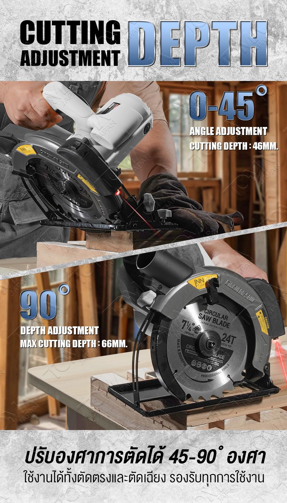 - สามารถปรับความลึกในการตัดได้ ตัดได้ลึกสุด 0-66 มิลลิเมตร