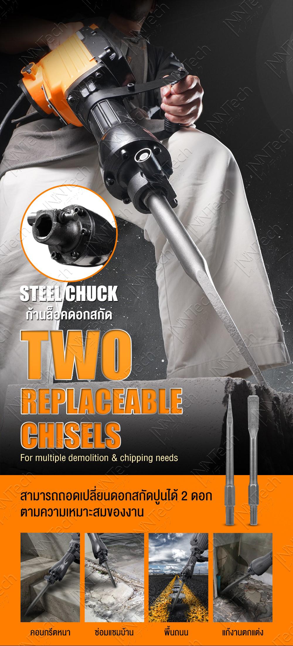 - เจาะปูน อิฐ พื้นแข็งต่างๆ เจาะงานหนักๆได้สบายๆ ตัวเครื่องแข็งแรง ทนทาน