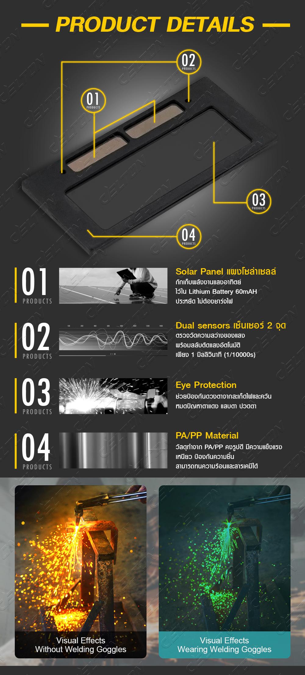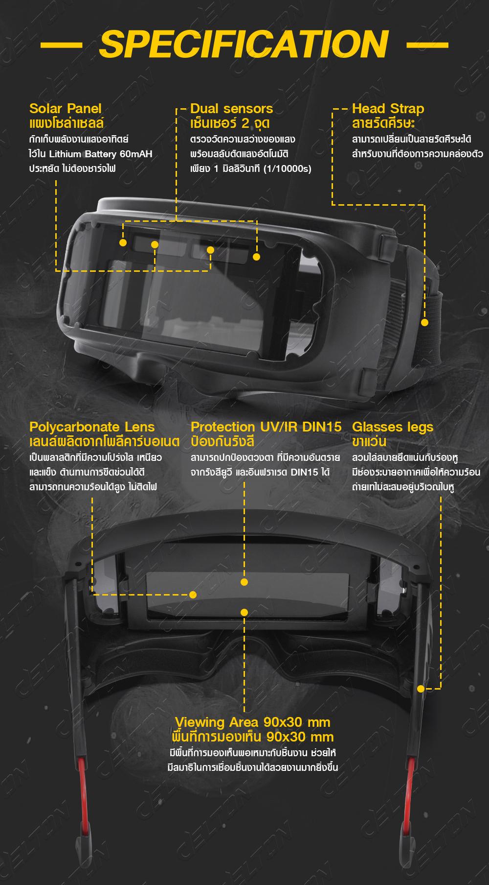 - มี Sensor 2 จุด ตรวจจับแสงจากการเชื่อม ปรับแสงออโต้