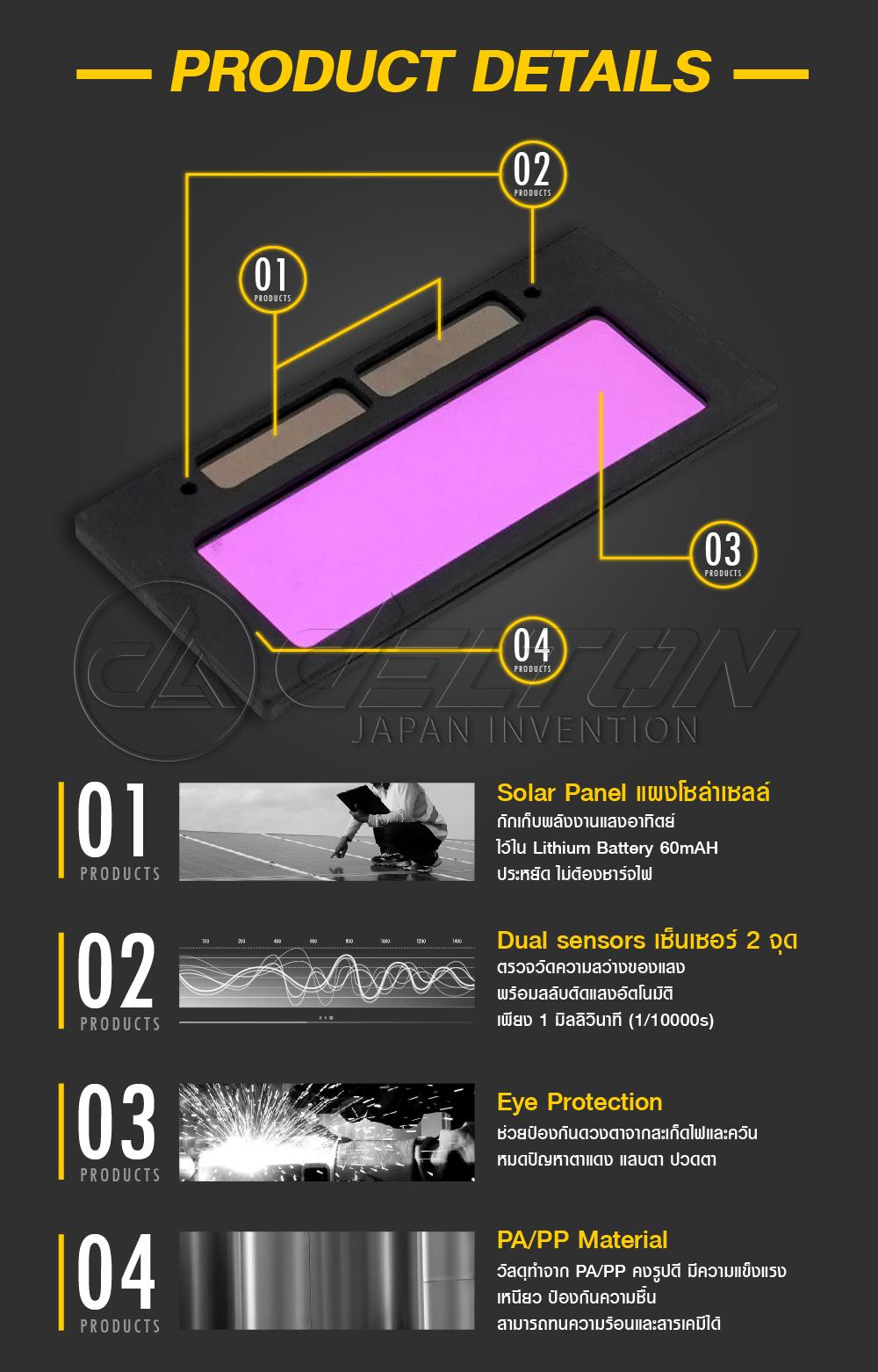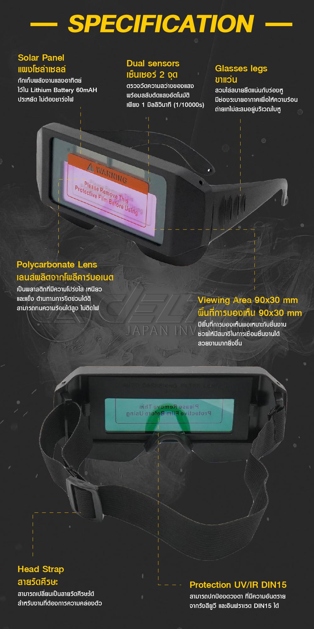 - มี Sensor 2 จุด ตรวจจับแสงจากการเชื่อม ปรับแสงออโต้