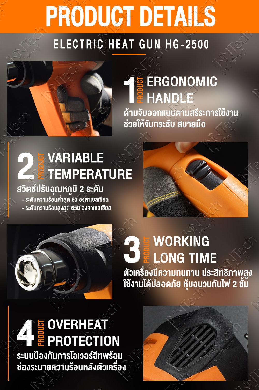 เครื่องเป่าลมร้อน InnTech รุ่น HG-2500 2500 วัตต์รายละเอียดสินค้า