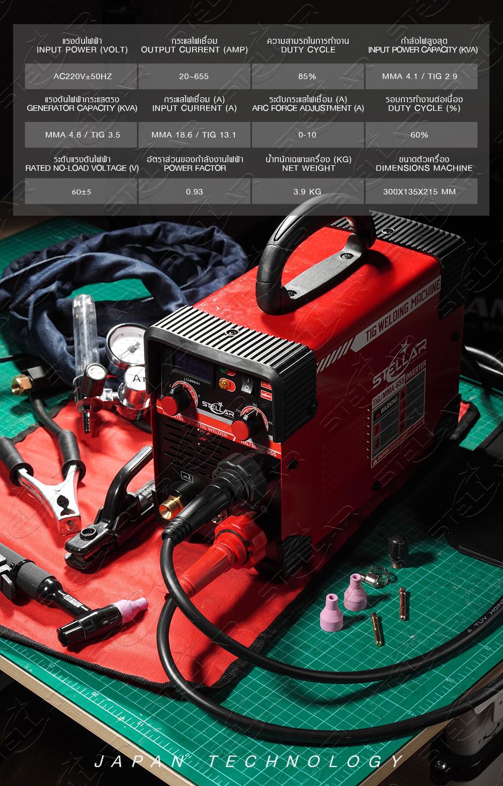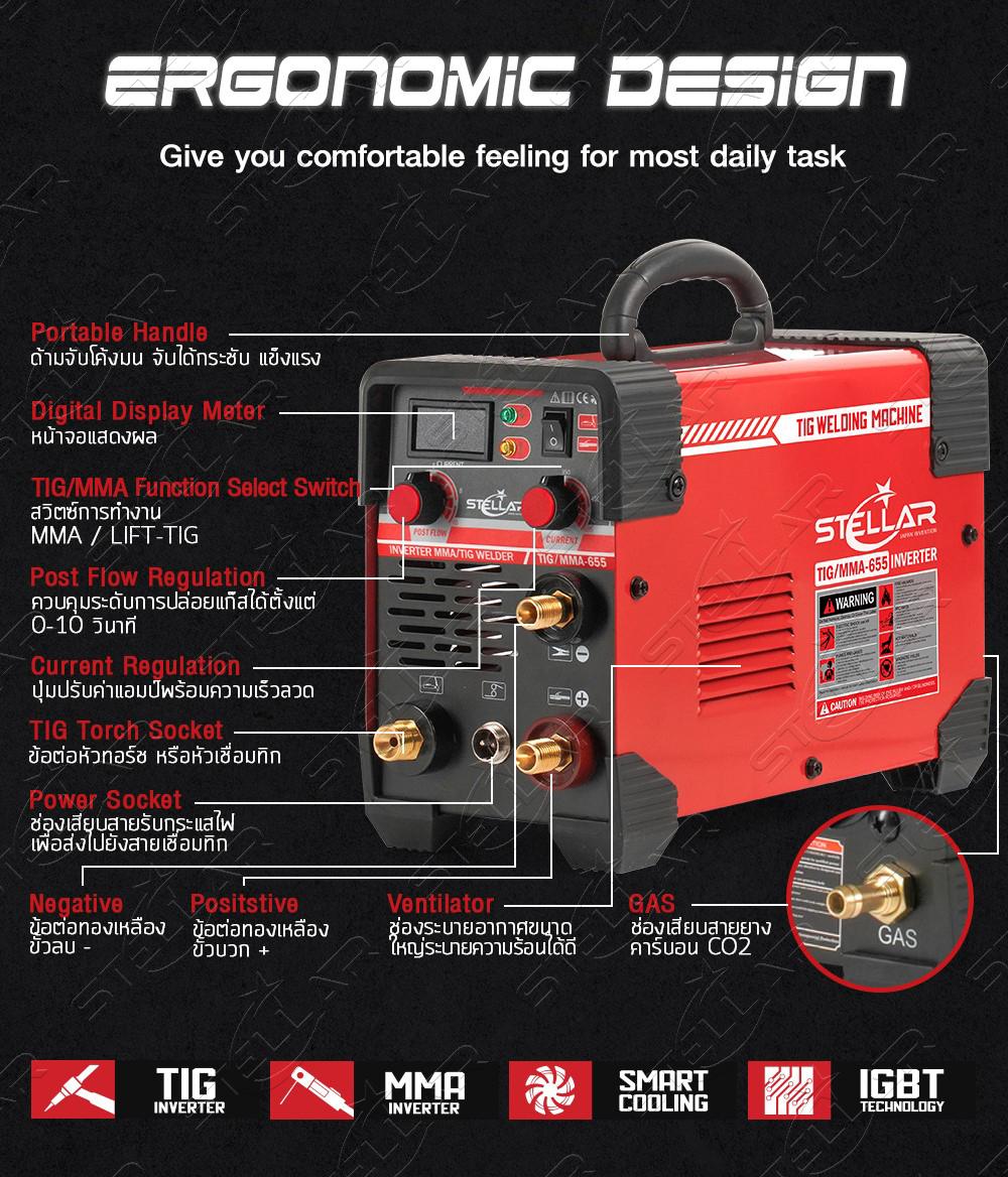 เครื่องเชื่อมอาร์กอน STELLAR รุ่น TIG/MMA-655