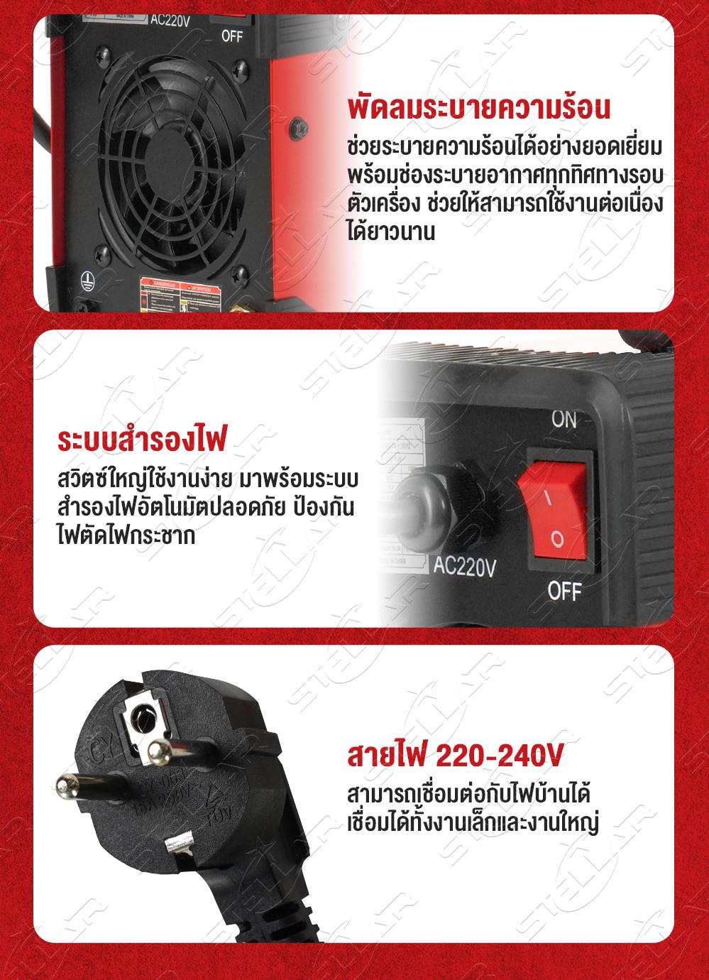 - ไฟแรง ใช้งานได้อย่างเสถียร เชื่อมนิ่ม แนวเชื่อมสวย เนียบเรียบ สม่ำเสมอ
