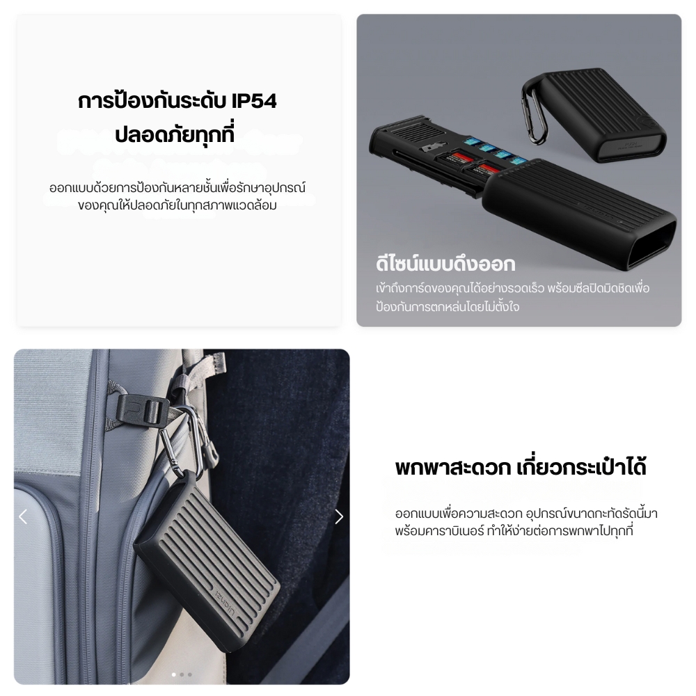 - ออกแบบเพื่อมืออาชีพ - ชิพ USB 3.2 Gen2 ความเร็ว 10Gbps พร้อมสล็อตอ่าน/เขียนแบบคู่ มีสาย Type-C ในตัว กันน้ำกันฝุ่น IP54