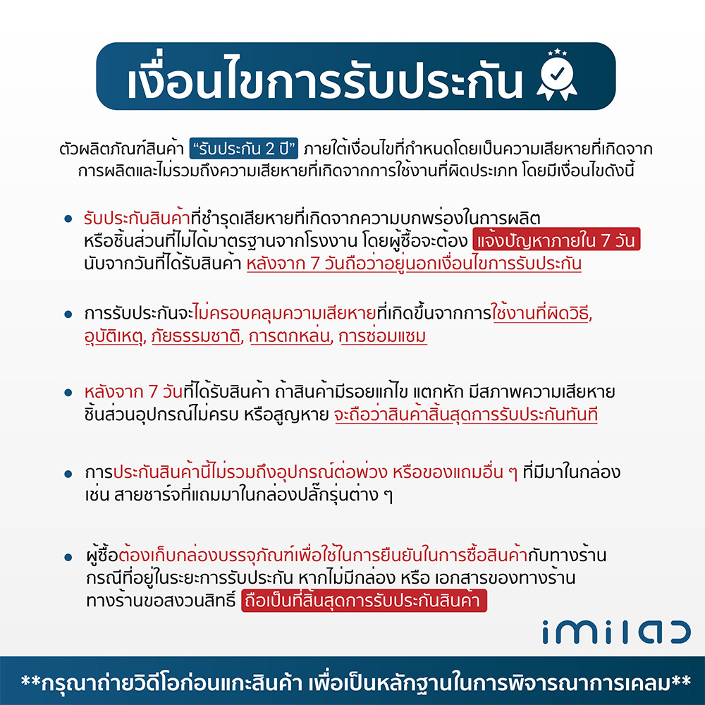 ห้ามดัดแปลง แก้ไขสินค้า หรือนำไปใช้งานผิดประเภท ห้ามใช้สารเคมีที่มีฤทธิ์เป็นกรด และด่างทำความสะอาด ห้ามจัดเก็บใกล้ความร้อน และเปลวไฟ