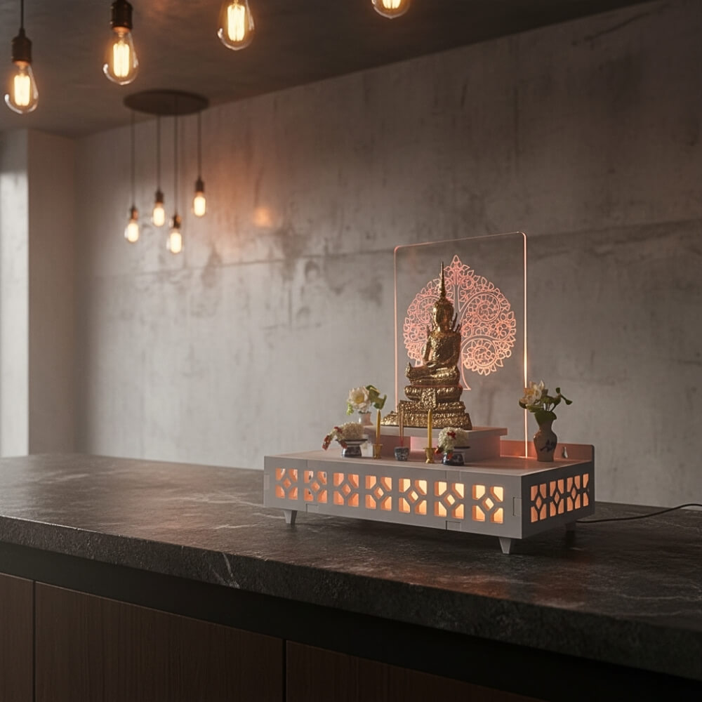 เหมาะกับผู้ที่ต้องการหิ้งพระทันสมัย พร้อมไฟ LED เสริมบรรยากาศ มอบเป็นของขวัญเสริมสิริมงคลให้คนสำคัญ
