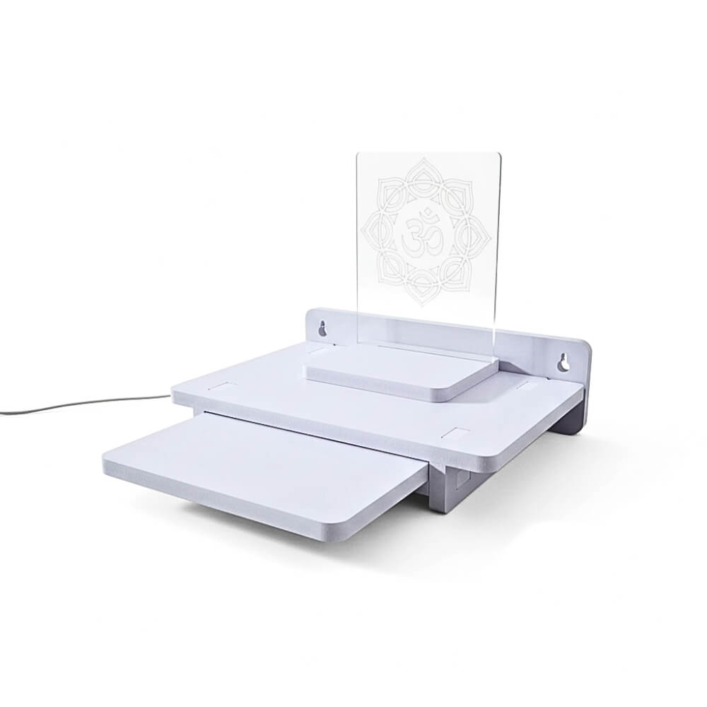 หิ้งพระมีไฟสไตล์โมเดิร์น KAF รุ่น SIMPLE PLUS LIGHT01 ลายโอมSimple Plus Light01 ลายโอม คือหิ้งพระรุ่นใหม่ที่ผสมผสานความมินิมอลกับความศรัทธาได้ลงตัว เหมาะกับบ้าน คอนโด หรือมุมบูชาสมัยใหม่