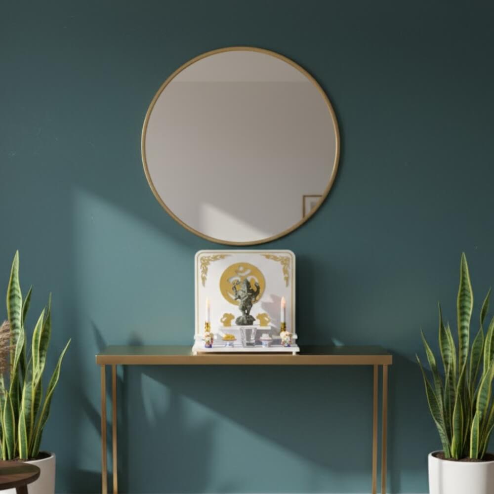 หิ้งพระโมเดิร์นตั้งโต๊ะและติดผนัง KAF รุ่น G6-AC ลายโอมกลมใหญ่ มุมทองเหมาะกับบ้านและคอนโดสมัยใหม่ที่ต้องการเพิ่มมิติแห่งศรัทธาด้วยสไตล์ร่วมสมัย