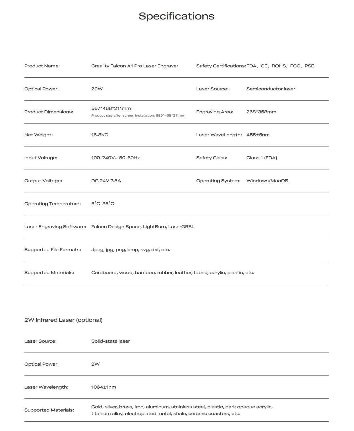 เครื่องปริ้นเลเซอร์และแกะสลัก CREALITY FALCON A1 PRO* หมายเหตุ 1. ทางบริษัทฯ ขอสงวนสิทธิ์ ในการรับผิดชอบใดๆ อันเนื่องจากข้อผิดพลาดทางการพิมพ์ (ผิด/ตก) 2. ทางบริษัทฯ ขอสงวนสิทธิ์ ในการเปลี่ยนแปลงราคาและโปรโมชั่นโดยไม่แจ้งให้ทราบล่วงหน้า