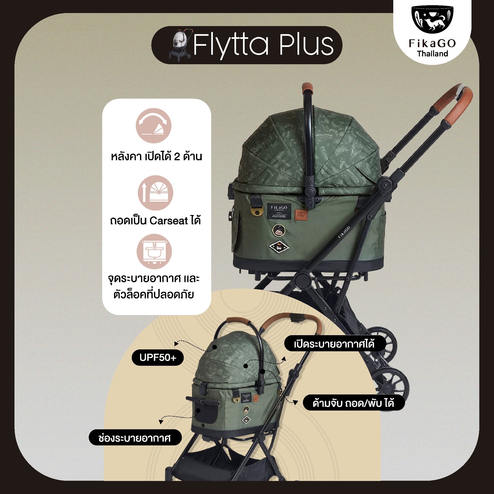 🛒 FikaGO – รถเข็นสัตว์เลี้ยง รุ่น Flytta Plus (ถอดเป็น Carseat ได้!) 2-in-1 ทั้งรถเข็น & Carseat ในใบเดียว สะดวกทุกทริป สไตล์พรีเมียมสำหรับ Pawrents สายเดินทาง 🐶🐱