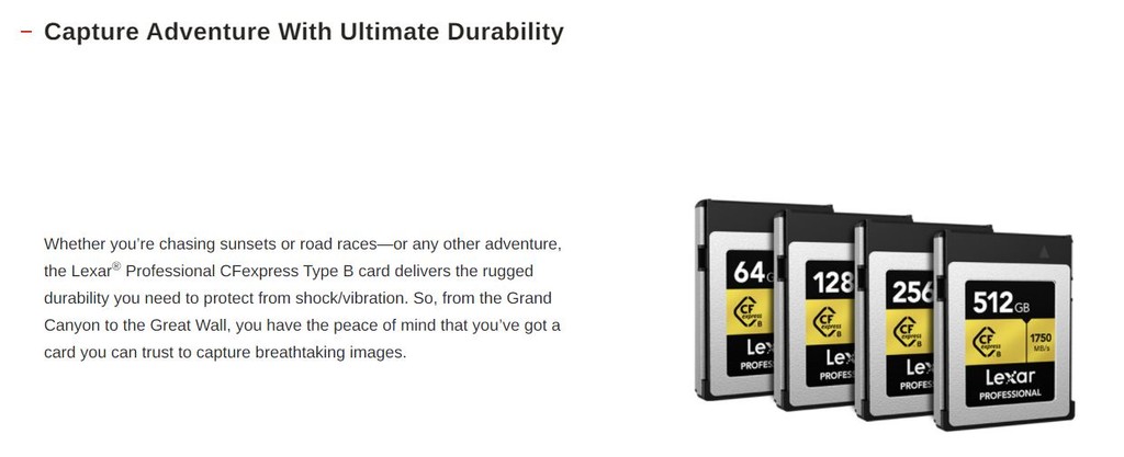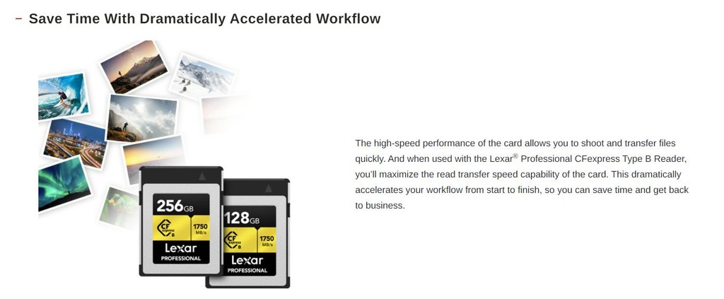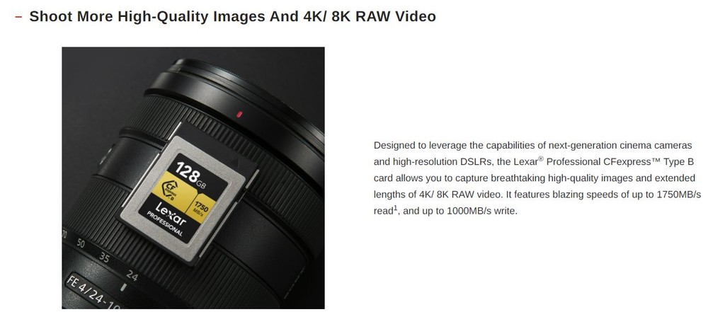 การ์ดหน่วยความจำ ซีเอฟเอ็กเพรสการ์ด LEXAR CFEXPRESS TYPE B 128GB VPG400 RAW 8K RW1900/1500MB/S (LCXEXPR128G) GOLD SERIES