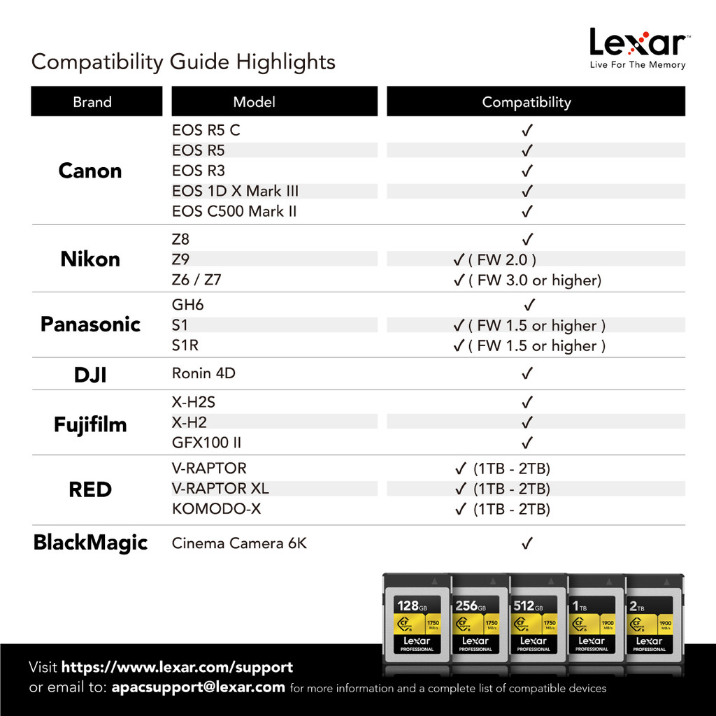 ✅รองรับการถ่ายภาพคุณภาพสูงและวิดีโอ RAW 4K/8K ✅รองรับโปรโตคอลทั้ง PCI Express ® Gen 3 และ NVMe ✅เพื่อความอเนกประสงค์ การ์ดสามารถใช้งานร่วมกับกล้องXQD ® รุ่นย้อนหลังได้* ✅มอบความทนทานที่คุณต้องการเพื่อป้องกันการกระแทก/การสั่นสะเทือน ✅เข้ากันได้กับกล้อง CFexpress™ ที่เปิดใช้งานเฟิร์มแวร์