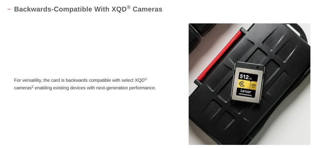 - เพื่อความอเนกประสงค์ การ์ดสามารถใช้งานร่วมกับกล้องXQD ® รุ่นย้อนหลังได้*