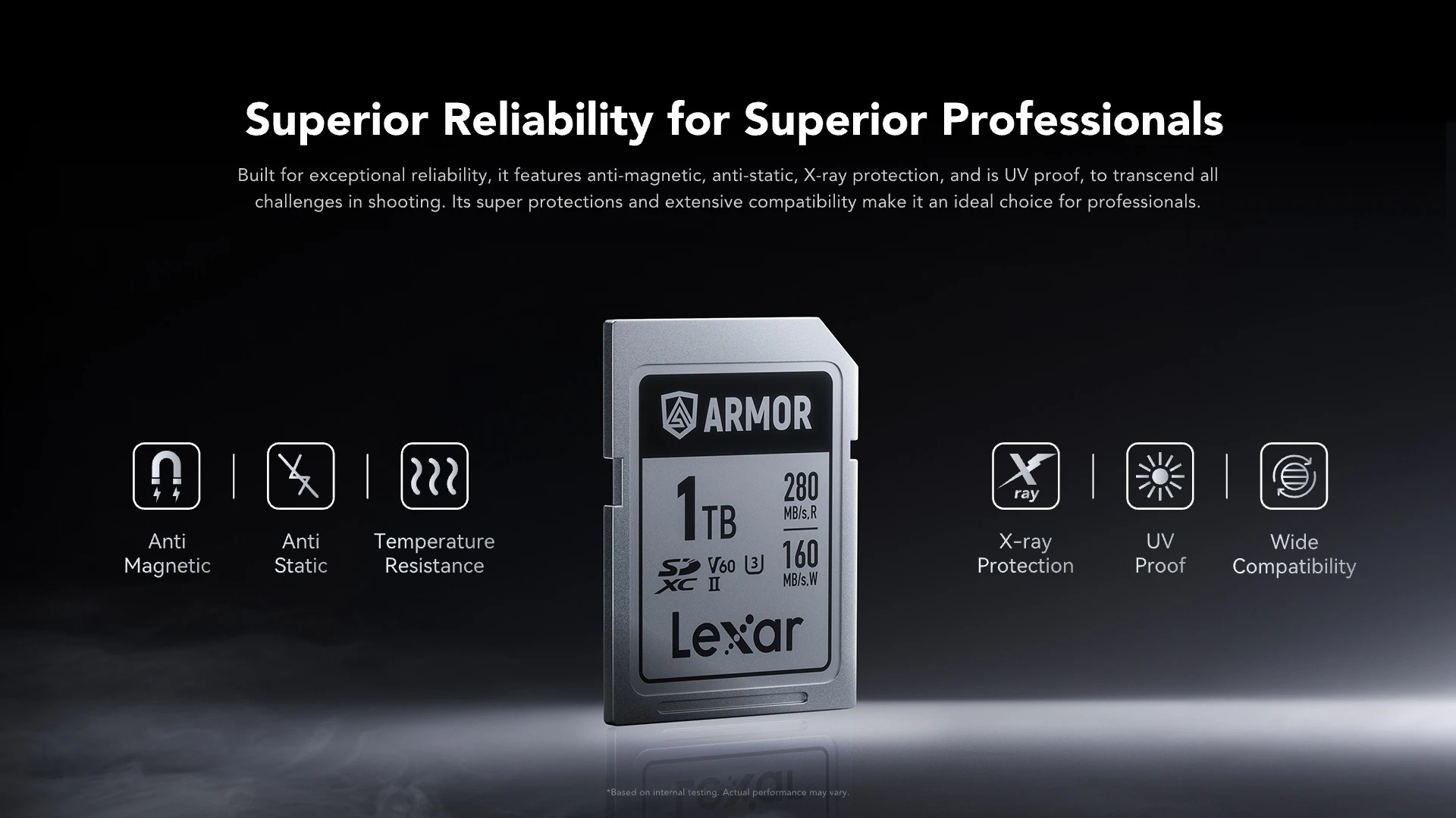 Material Stainless steel Capacity 64GB, 128GB, 256GB, 512GB, 1TB Performance 64GB Up to 280MB/s read, up to 130MB/s write1 128GB Up to 280MB/s read, up to 120MB/s write1 256GB-1TB Up to 280MB/s read, up to 160MB/s write1 Form Factor UHS-II Video Speed Class V60 Operating Temperature -25° to 85°C (-13°F to 185°F) Storage Temperature -40° to 85°C (-40°F to 185°F) Dimensions (W x L x H) 32mm x 24mm x 2.1mm / 1.25” x 0.95” x 0.08” Weight 7.65g / 0.016lbs Warranty Limited lifetime warranty2