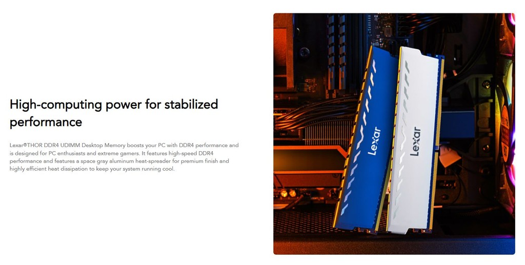 แรมพีซี LEXAR THOR 16GB (16GBX1) DDR4/3200MHZ CL16 U-DIMM HEATSINK (LD4BU016G-R3200GSXG)