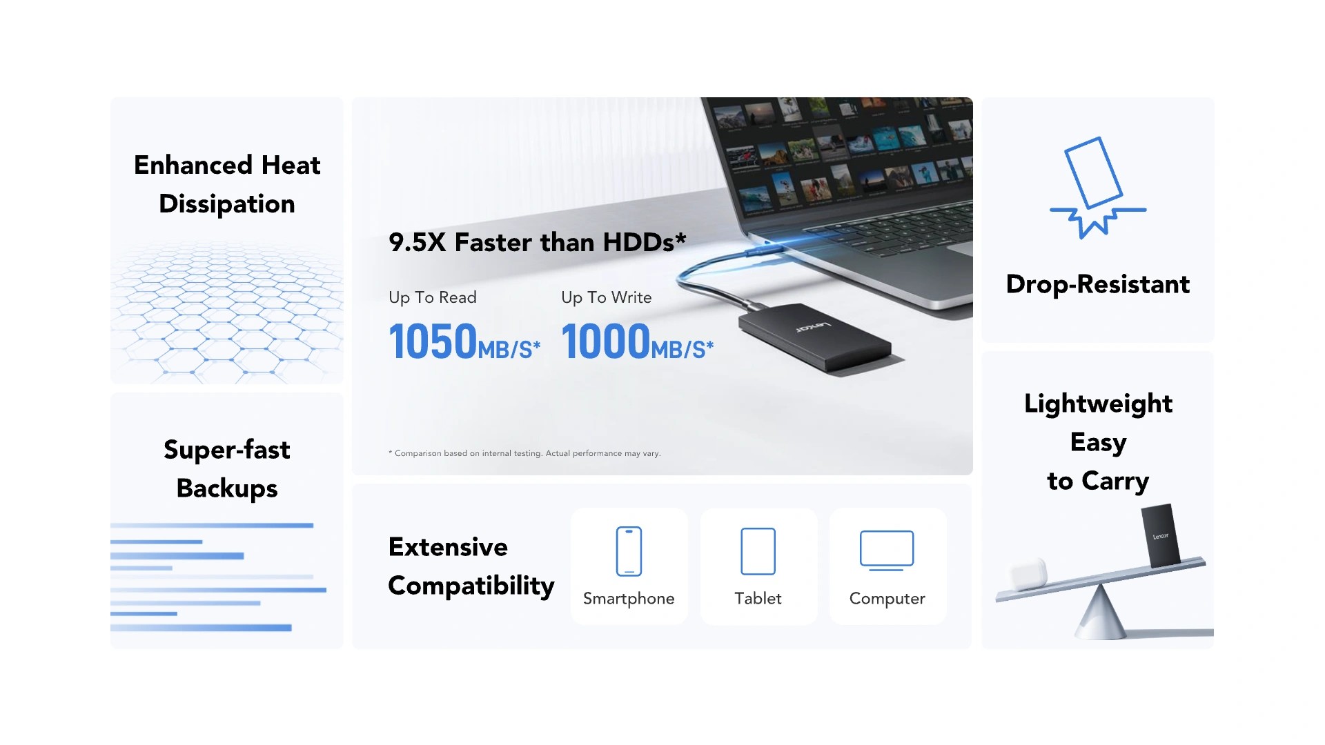 - ความเร็วในการอ่านสูงสุด 1050 MB/s