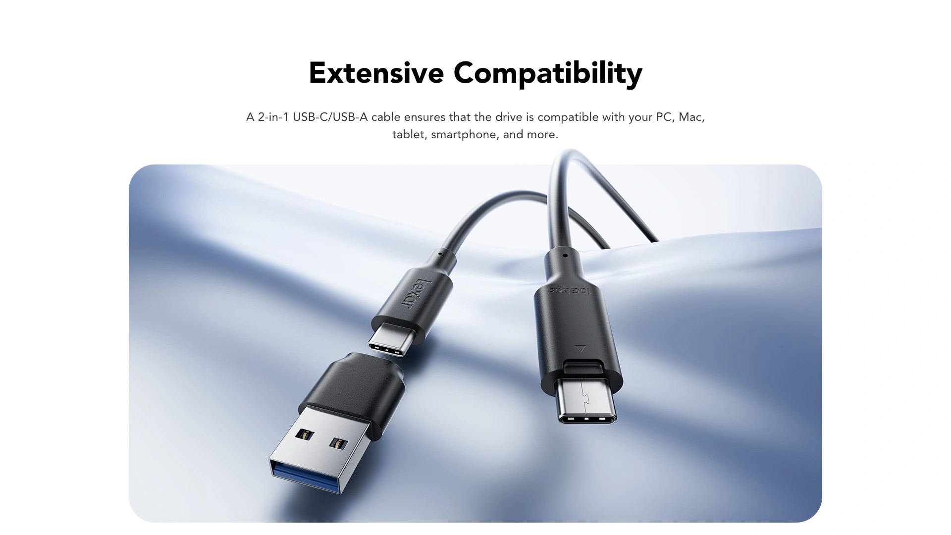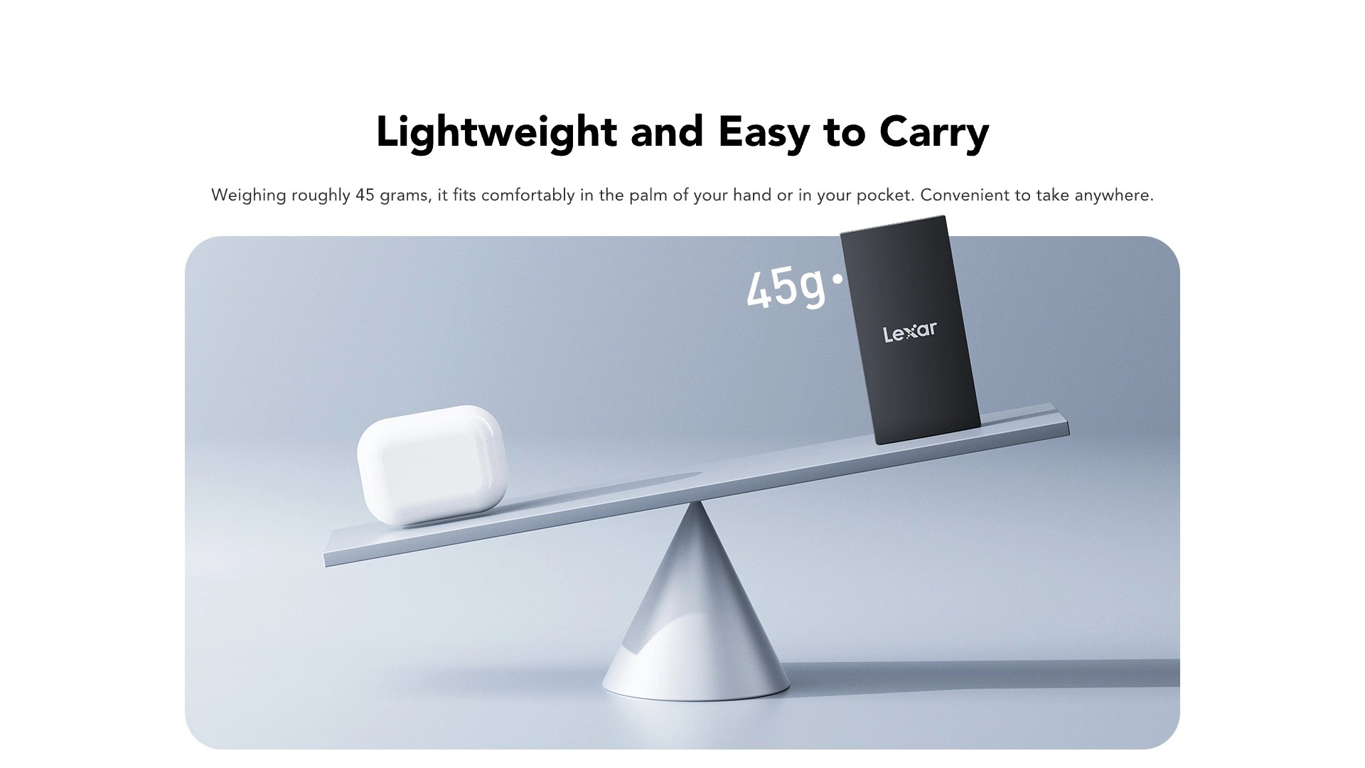 ความจุ 1TB / 2TB อินเทอร์เฟซ USB 3.2 เจนเนอเรชั่น 2 ความเร็วในการอ่านสูงสุด 1050 MB/s ความเร็วในการเขียนสูงสุด 1000 MB/s 1 อุณหภูมิในการทำงาน 0°C ถึง 50°C (32°F ถึง 122°F) อุณหภูมิในการจัดเก็บ -40°C ถึง 85°C (-40°F ถึง 185°F) ขนาดโมดูล (ยาว x กว้าง x สูง) 100.6 มม. x 50 มม. x 10.5 มม. น้ำหนัก 45 กรัม การรับประกันแบบจำกัด 3 ปี