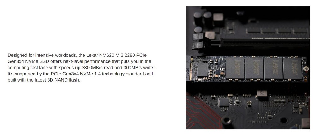 เอสเอสดี ภายใน Lexar NM620 512GB M.2 2280 PCIe NVMe (LNM620X512G)