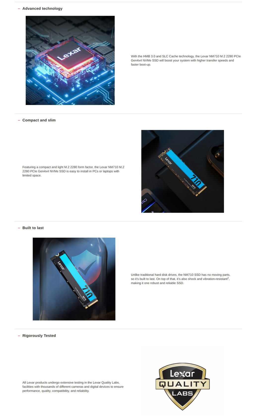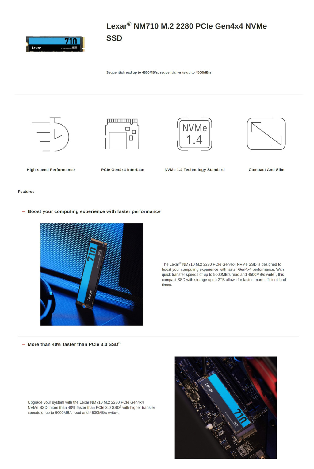 - ใช้อินเทอร์เฟซ PCIe Gen4x4 ที่ให้ความเร็วสูง