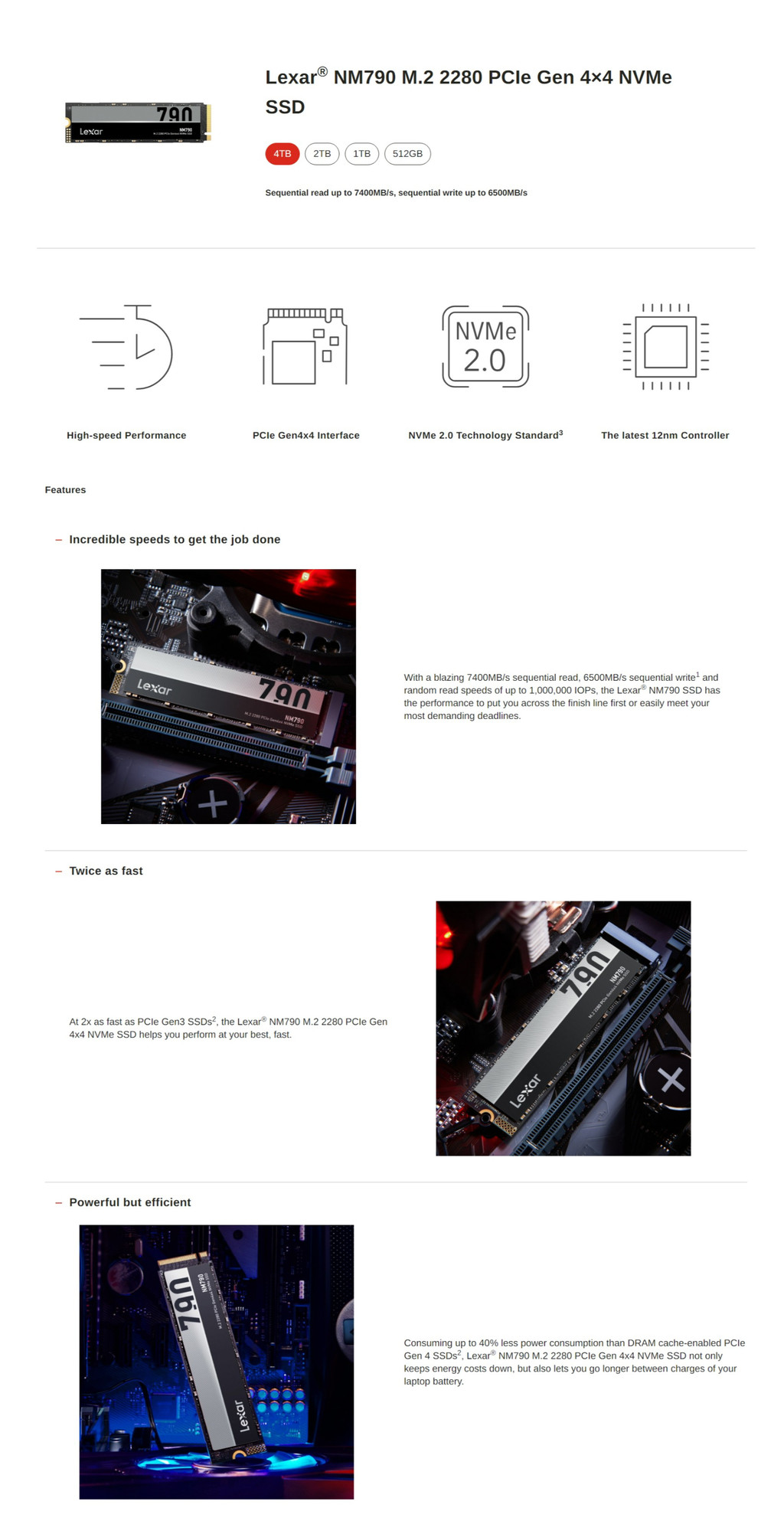 เอสเอสดี ภายใน Lexar NM790 2TB M.2 2280 PCIe NVMe (LNM790X002T-RNNNG)